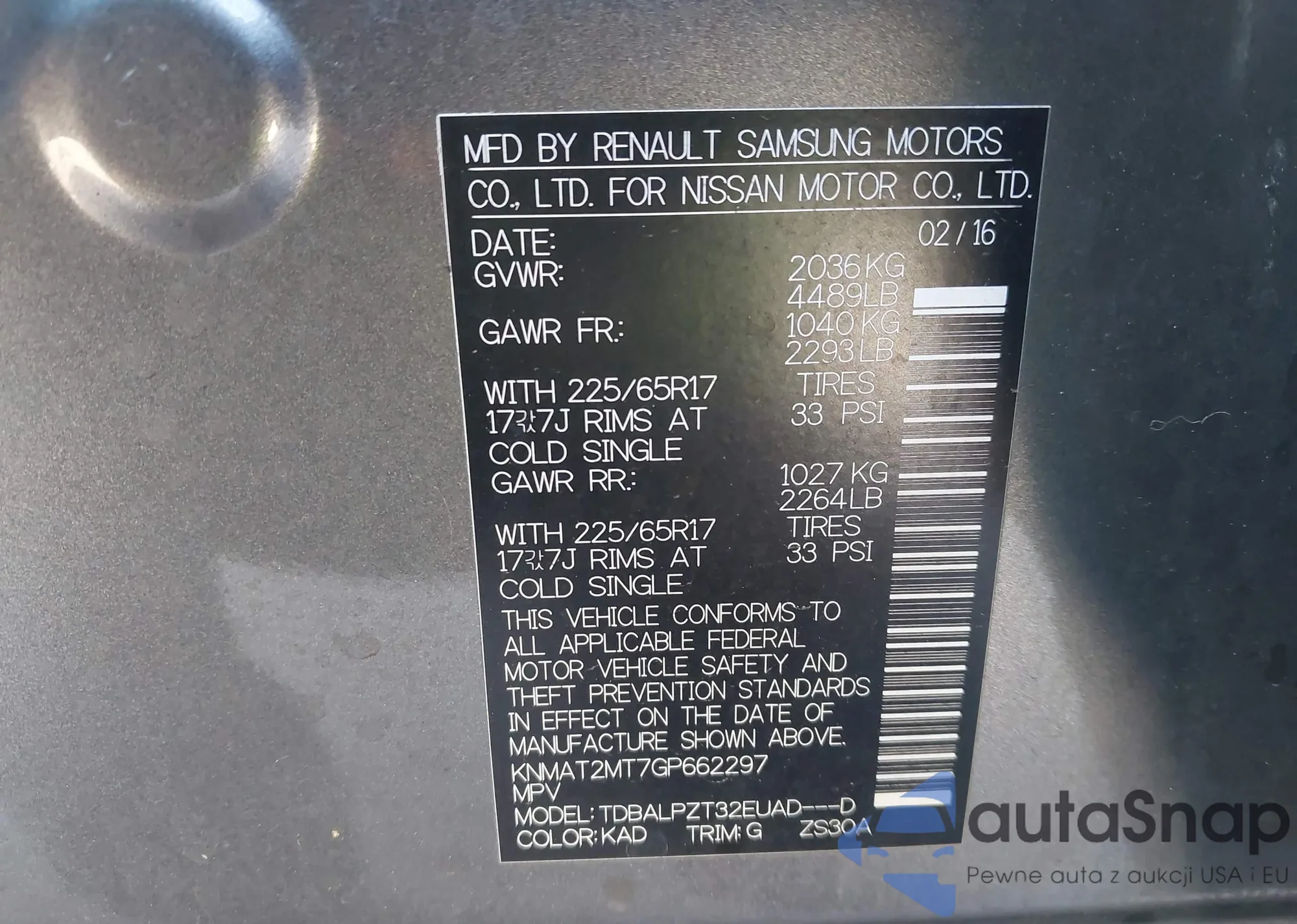 Samochód Nissan Rogue 2016 (VIN KNMAT2MT7GP662297) nie był wcześniej licytowany. Dokumenty są czyste, przebieg odpowiada lub jest niższy niż średnia rynku. Sprzedaje go firma ubezpieczeniowa – polecamy zakup. Dostawa do portu zajmie ok. 6–8 tygodni.