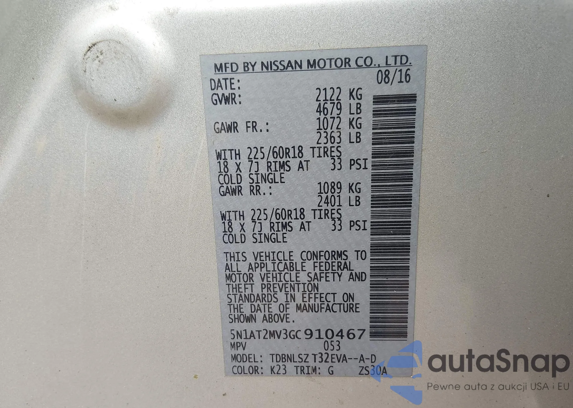 Samochód Nissan Rogue 2016 (VIN 5N1AT2MV3GC910467) sprzedaje go niezweryfikowany sprzedawca. Zalecamy raport Carfax i potwierdzenie możliwości rejestracji pojazdu przed zakupem.