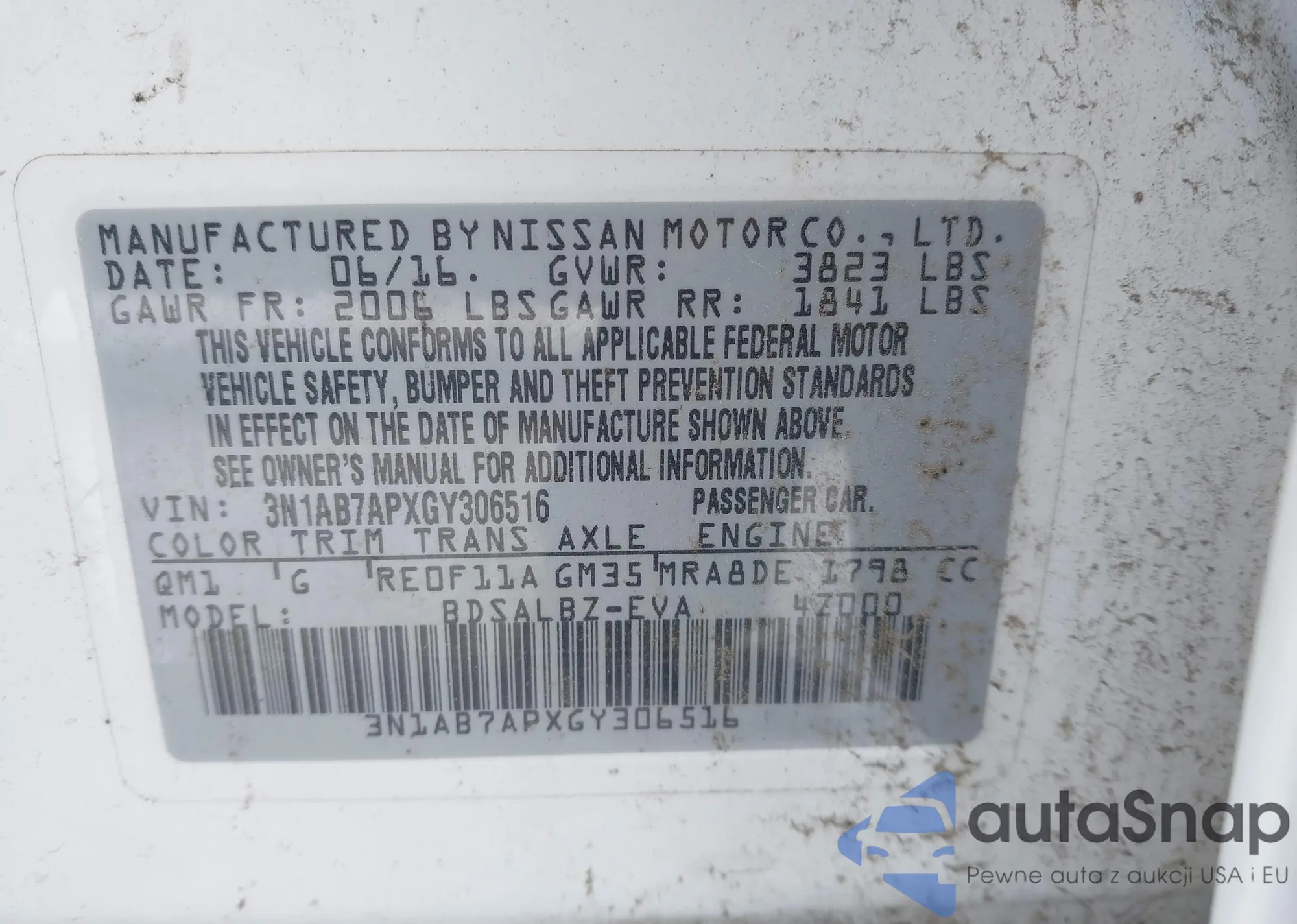 VIN: 3N1AB7APXGY306516