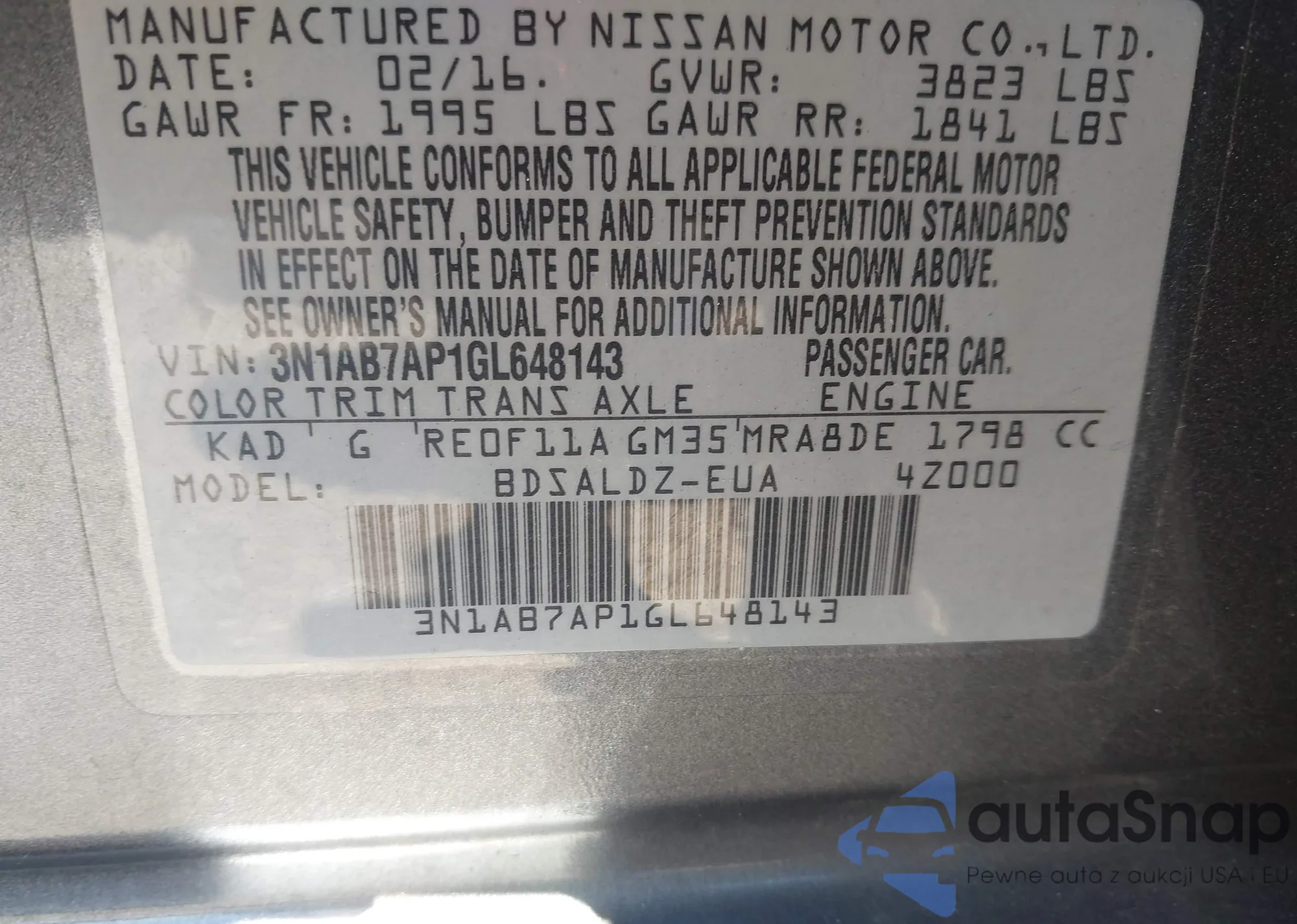 VIN: 3N1AB7AP1GL648143