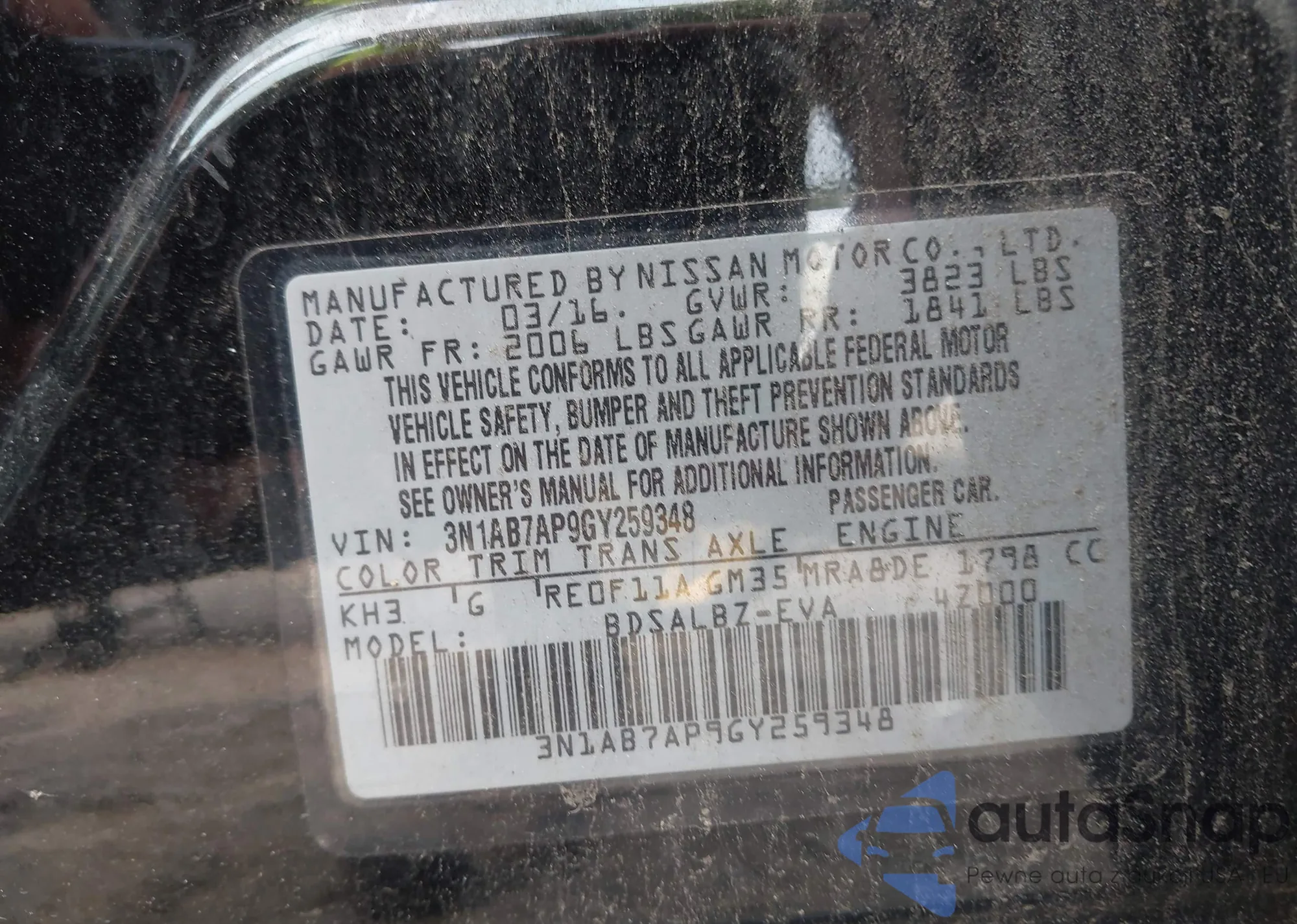 VIN: 3N1AB7AP9GY259348