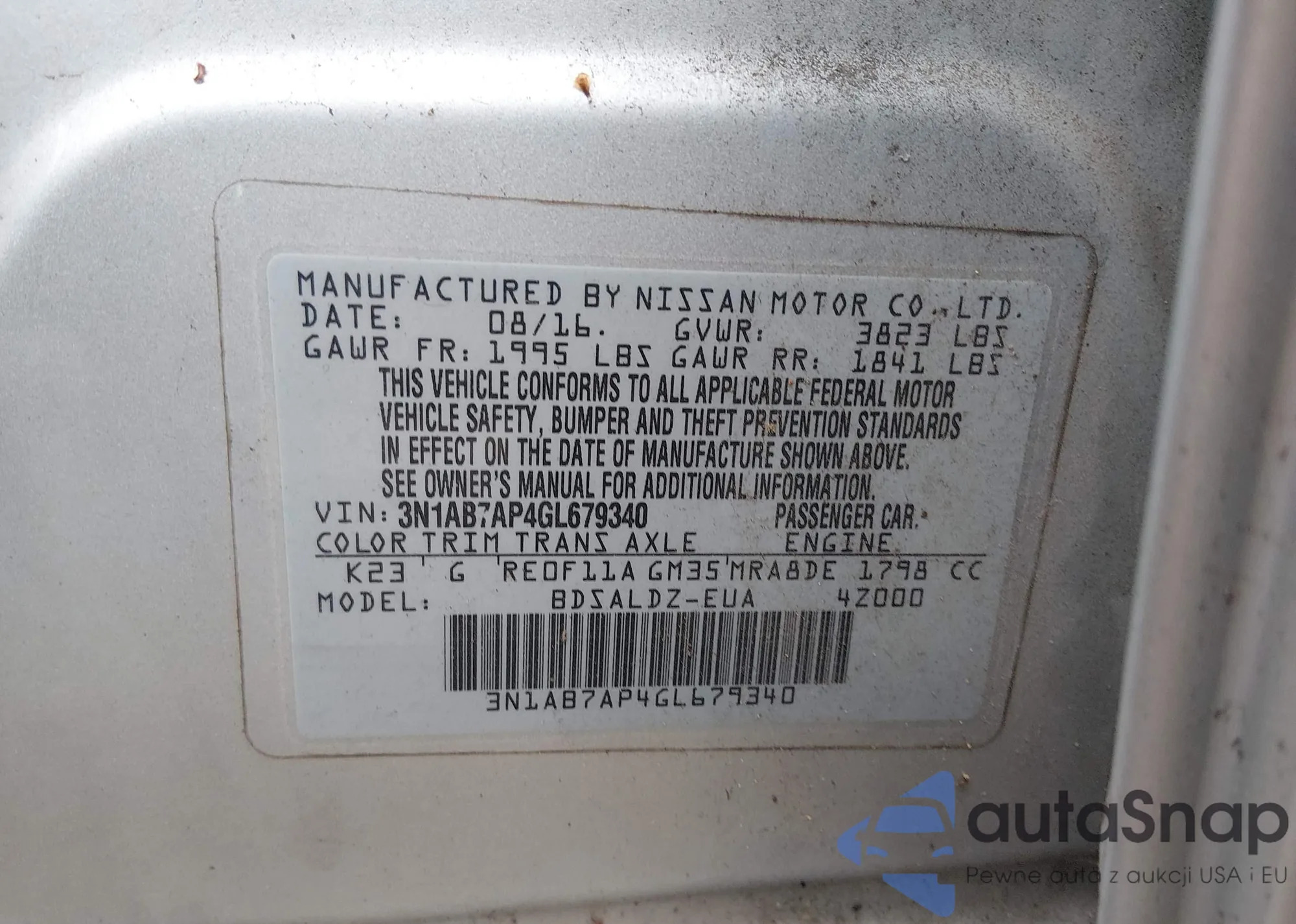 Samochód Nissan Sentra 2016 (VIN 3N1AB7AP4GL679340) nie był wcześniej licytowany. Dokumenty są czyste, przebieg odpowiada lub jest niższy niż średnia rynku. Sprzedaje go firma ubezpieczeniowa – polecamy zakup. Dostawa do portu zajmie ok. 6–8 tygodni.