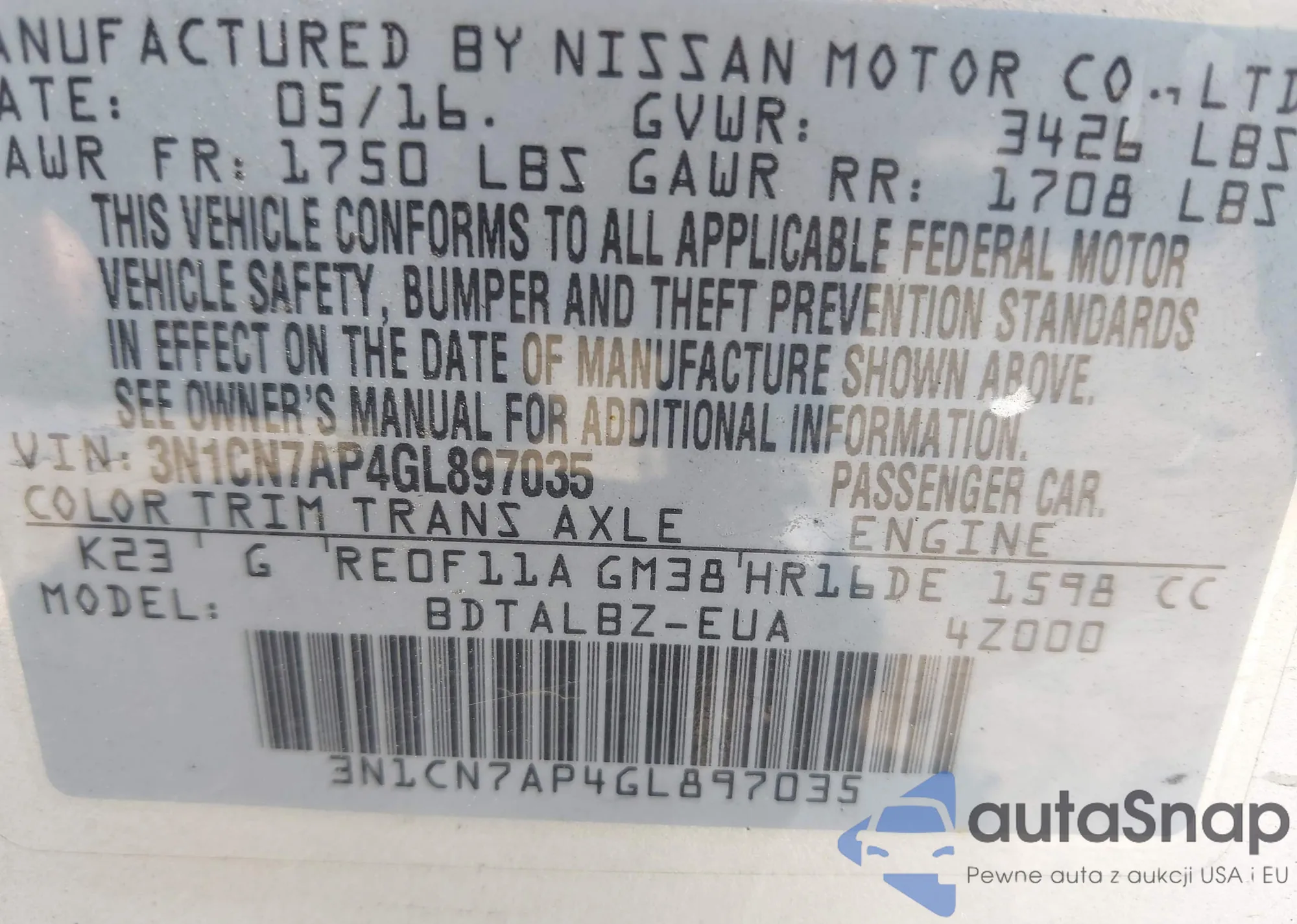 VIN: 3N1CN7AP4GL897035
