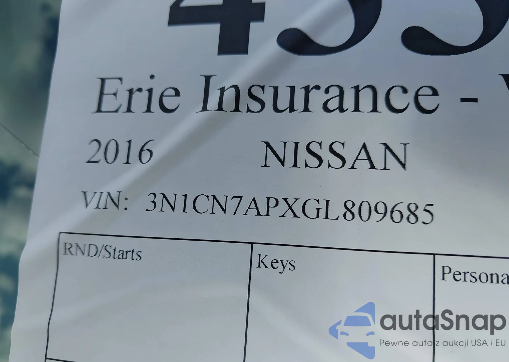 Nissan Versa 2016 – Historia pojazdu (sprzedany na IAAI)