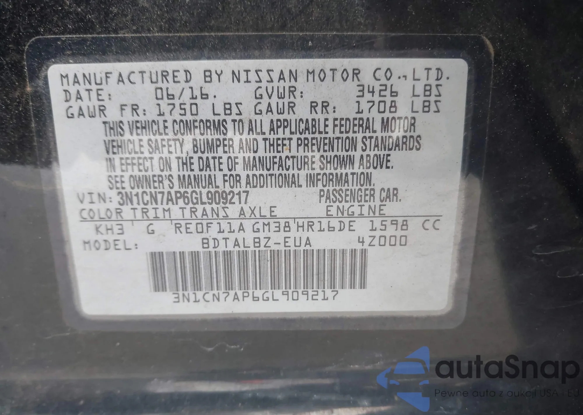 VIN: 3N1CN7AP6GL909217