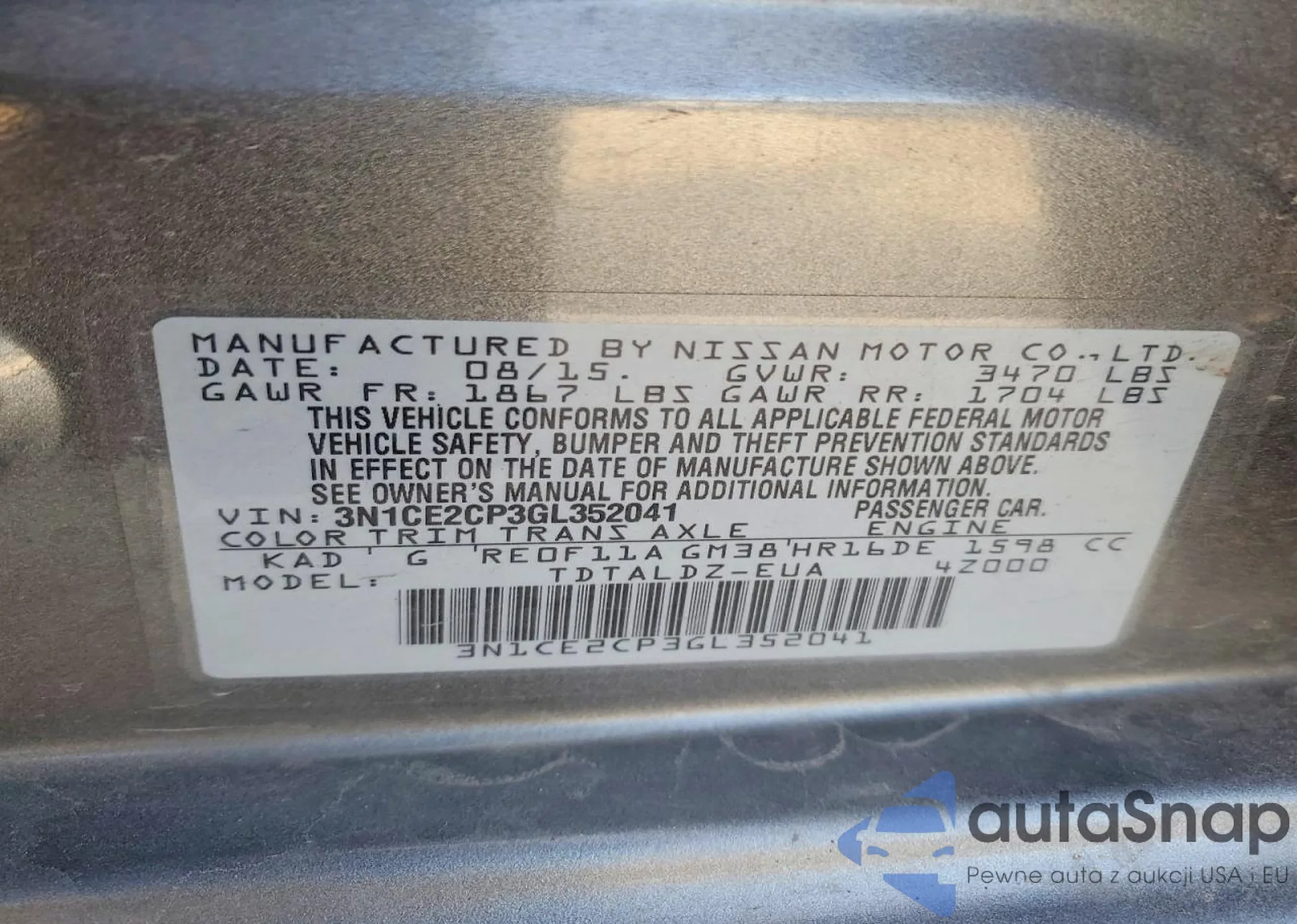 VIN: 3N1CE2CP3GL352041