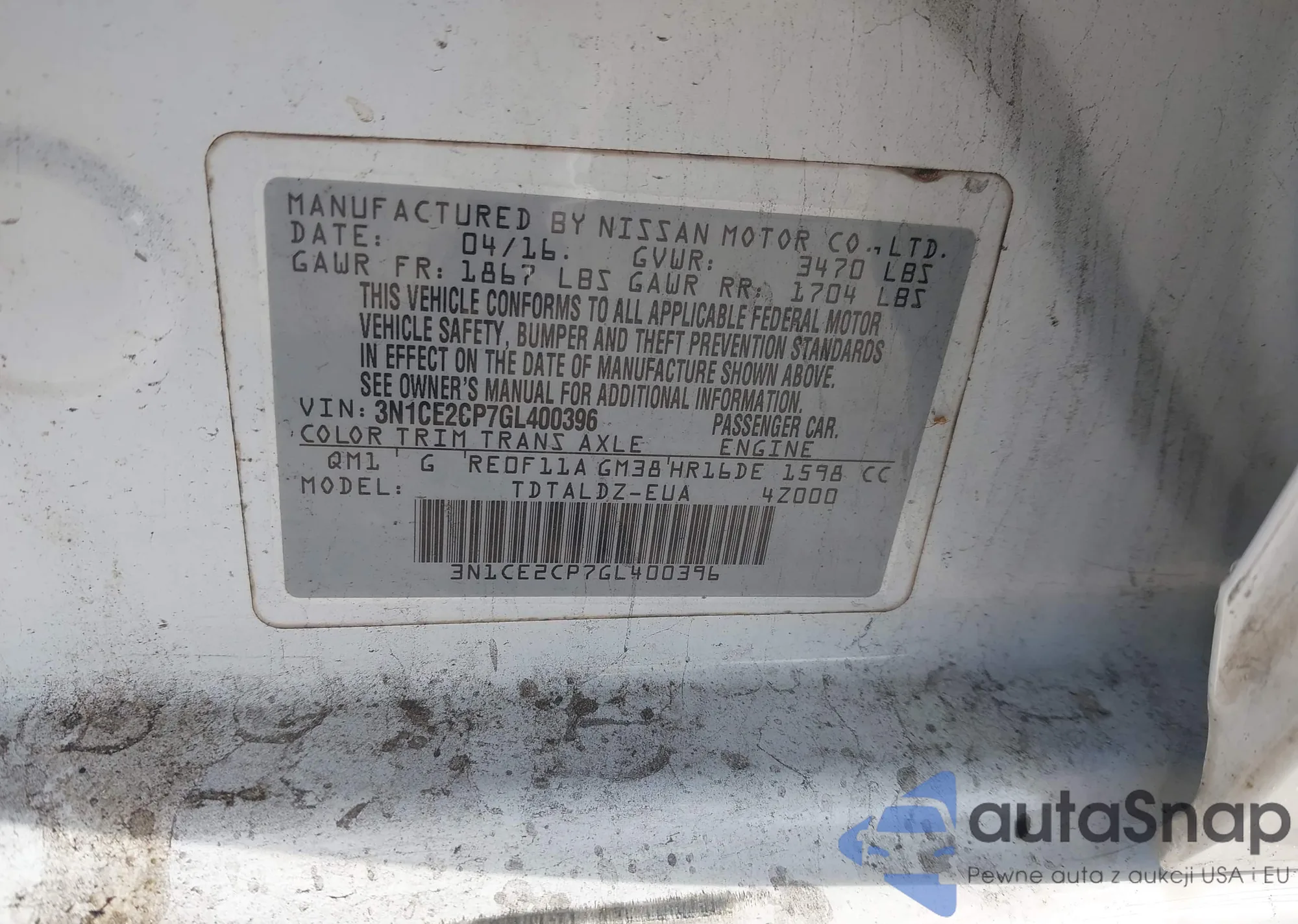 VIN: 3N1CE2CP7GL400396