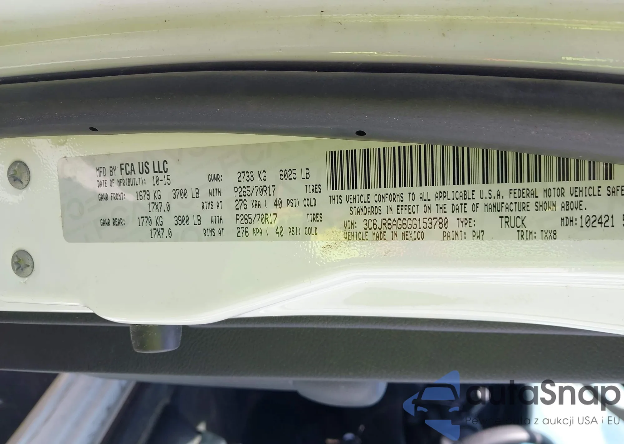 VIN: 3C6JR6AG6GG153780