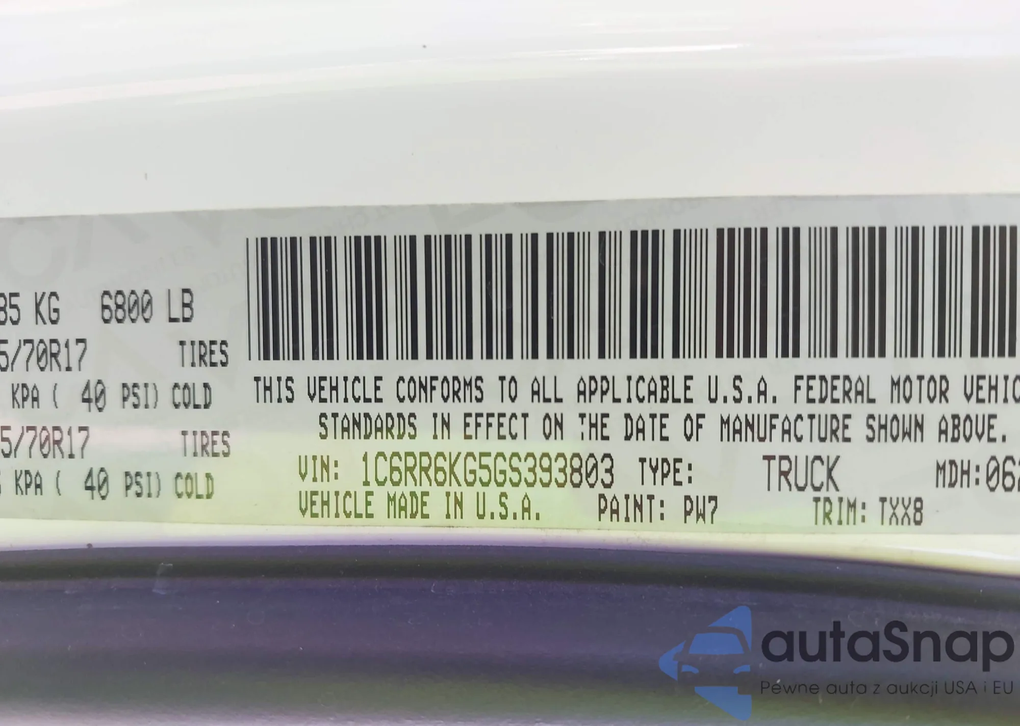 VIN: 1C6RR6KG5GS393803