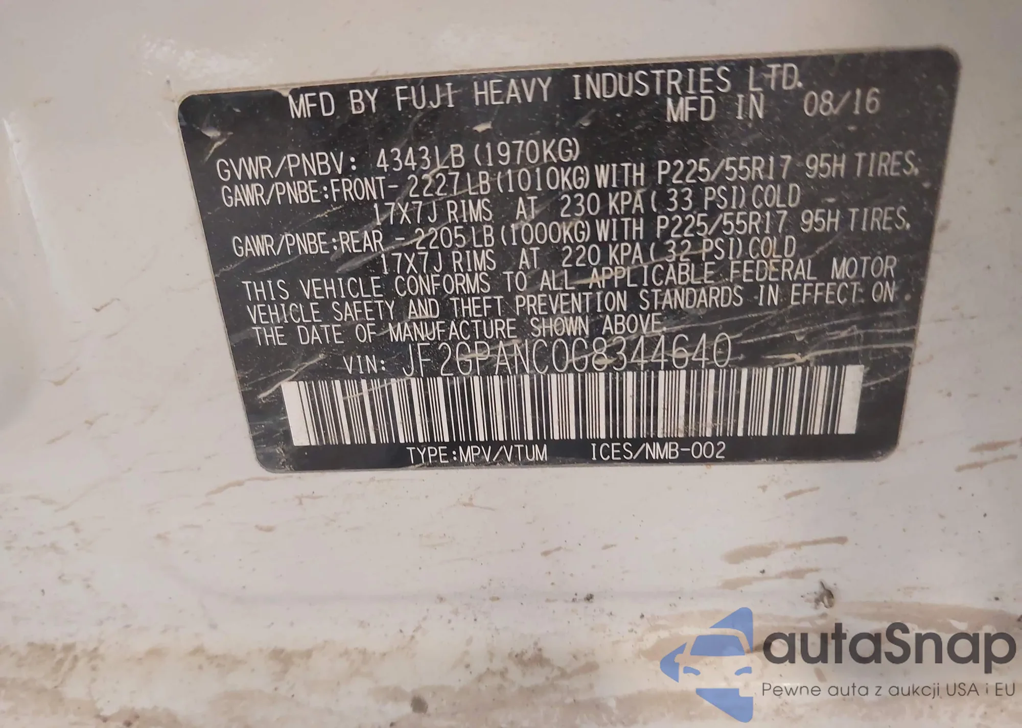 Samochód Subaru XV 2016 (VIN JF2GPANC0G8344640) nie był wcześniej licytowany. Dokumenty są czyste, przebieg odpowiada lub jest niższy niż średnia rynku. Sprzedaje go firma ubezpieczeniowa – polecamy zakup. Dostawa do portu zajmie ok. 6–8 tygodni.