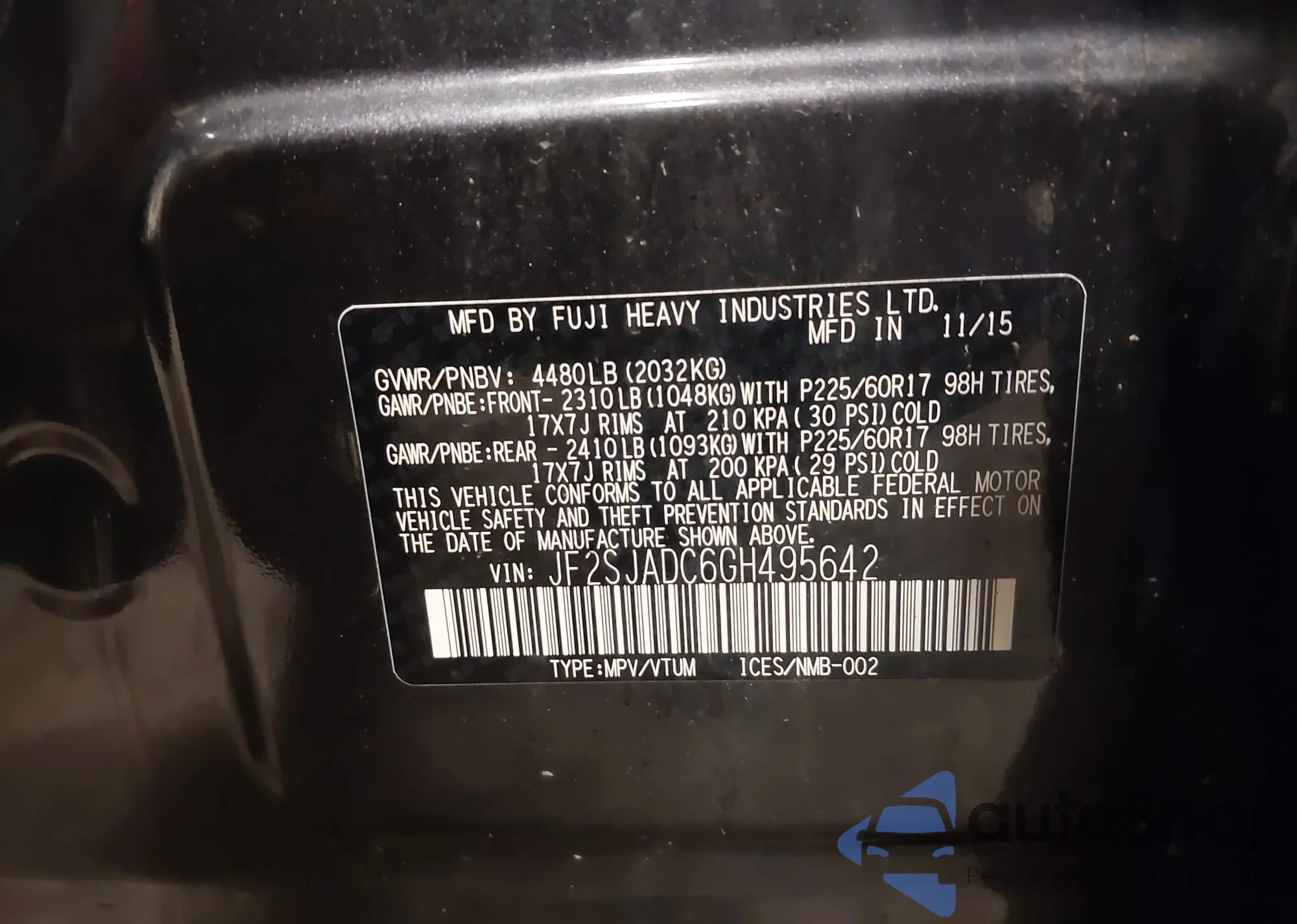 VIN: JF2SJADC6GH495642