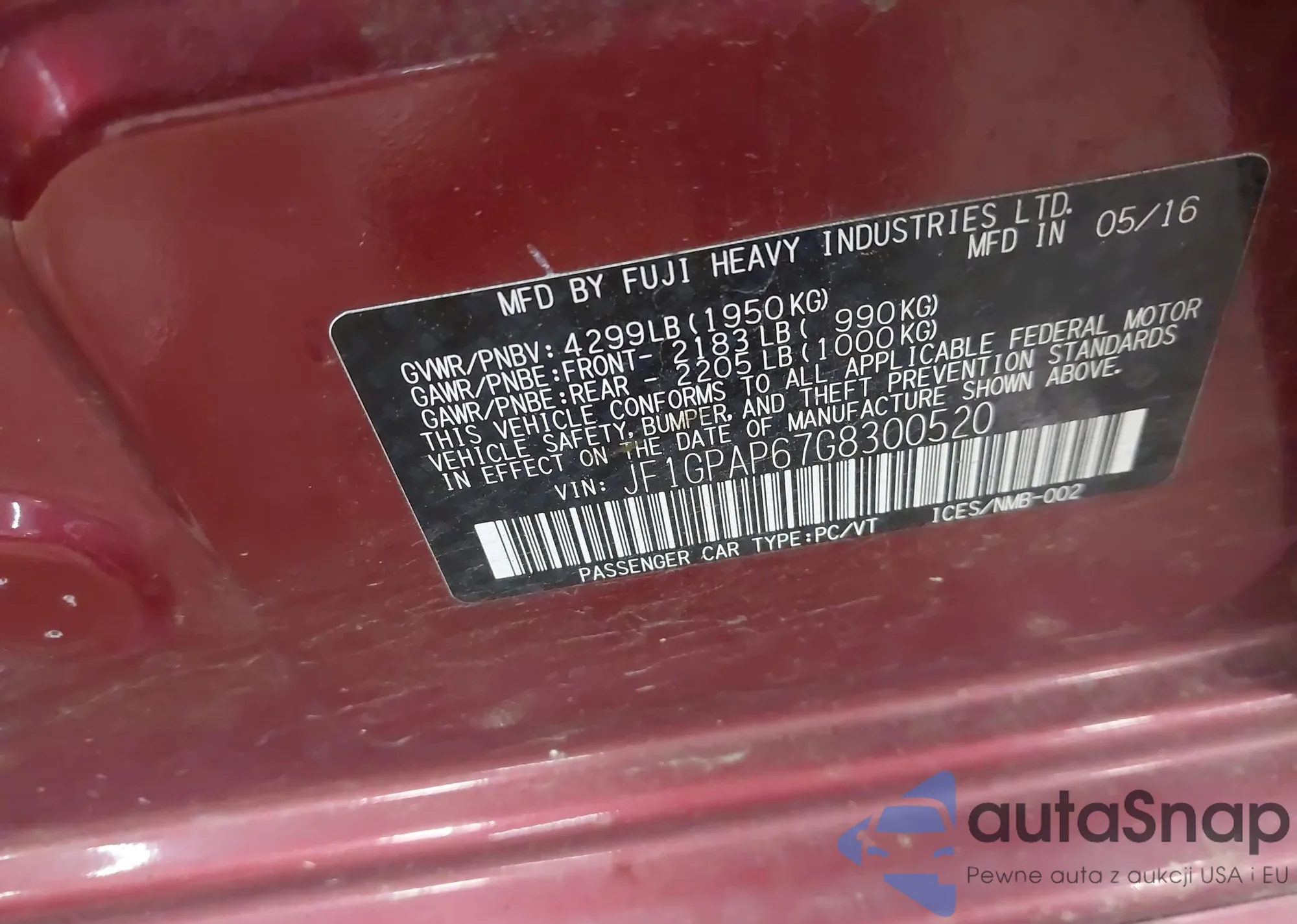 VIN: JF1GPAP67G8300520