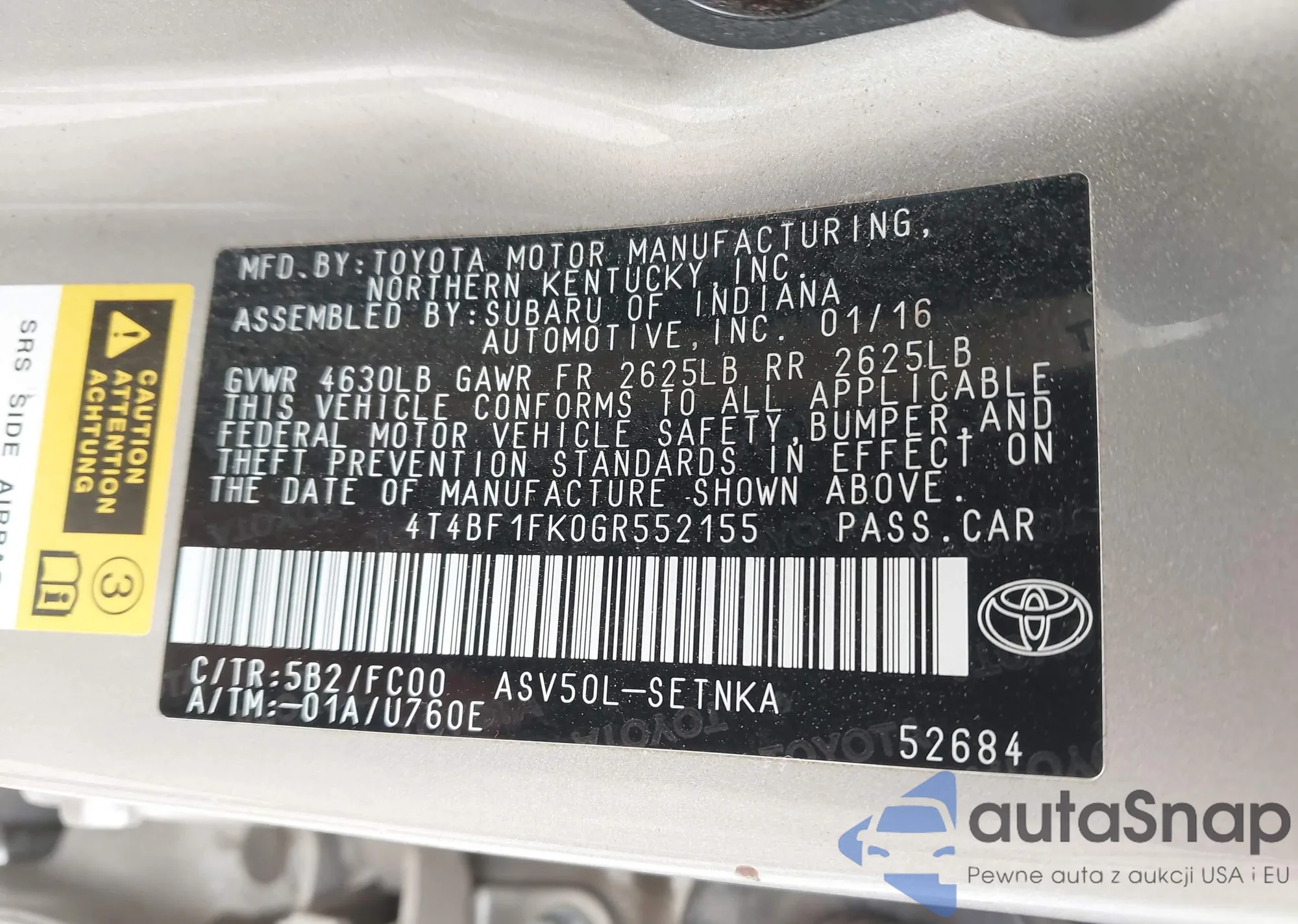 VIN: 4T4BF1FK0GR552155