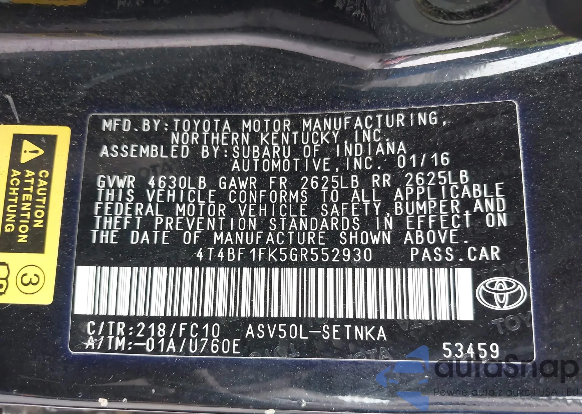 VIN: 4T4BF1FK5GR552930