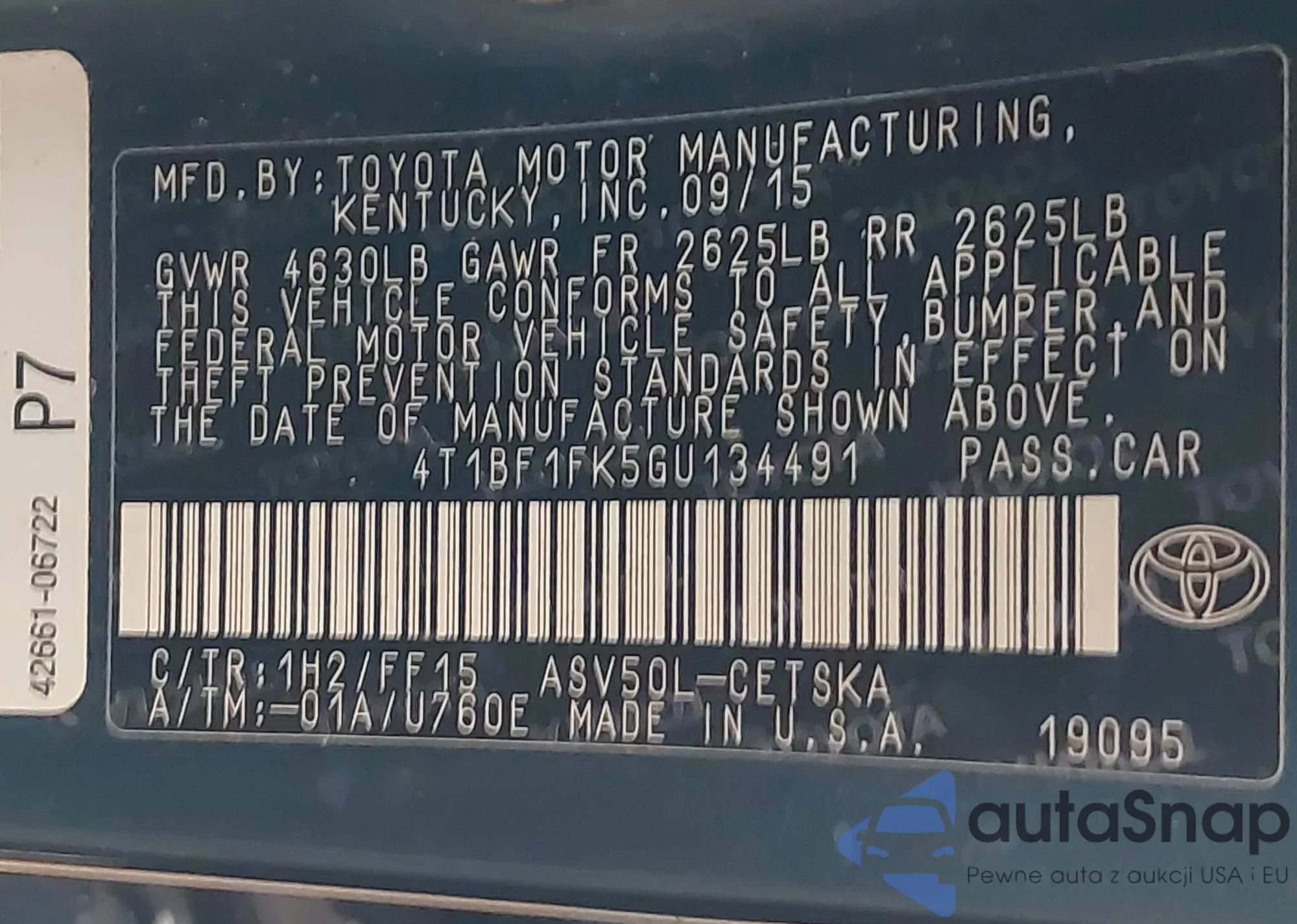 VIN: 4T1BF1FK5GU134491
