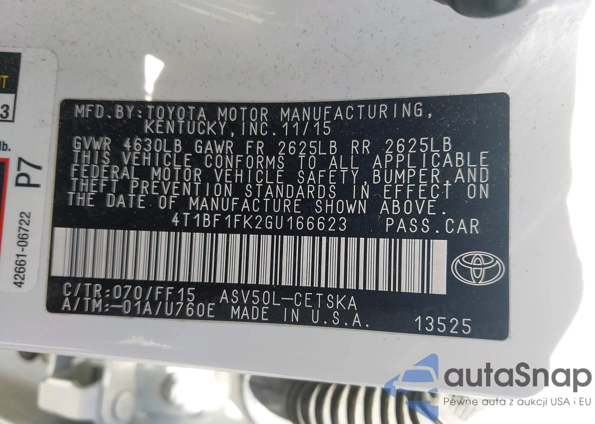 VIN: 4T1BF1FK2GU166623