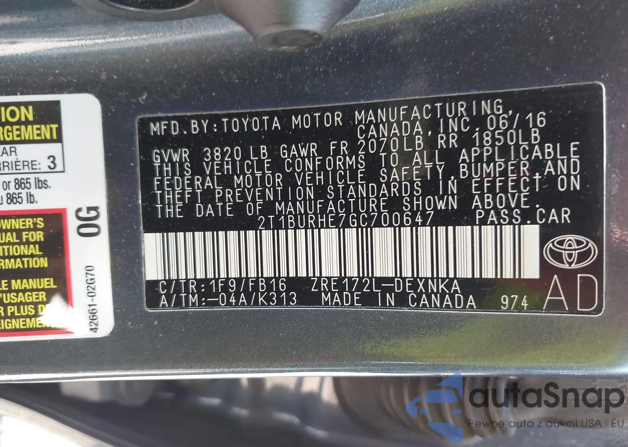 VIN: 2T1BURHE7GC700647