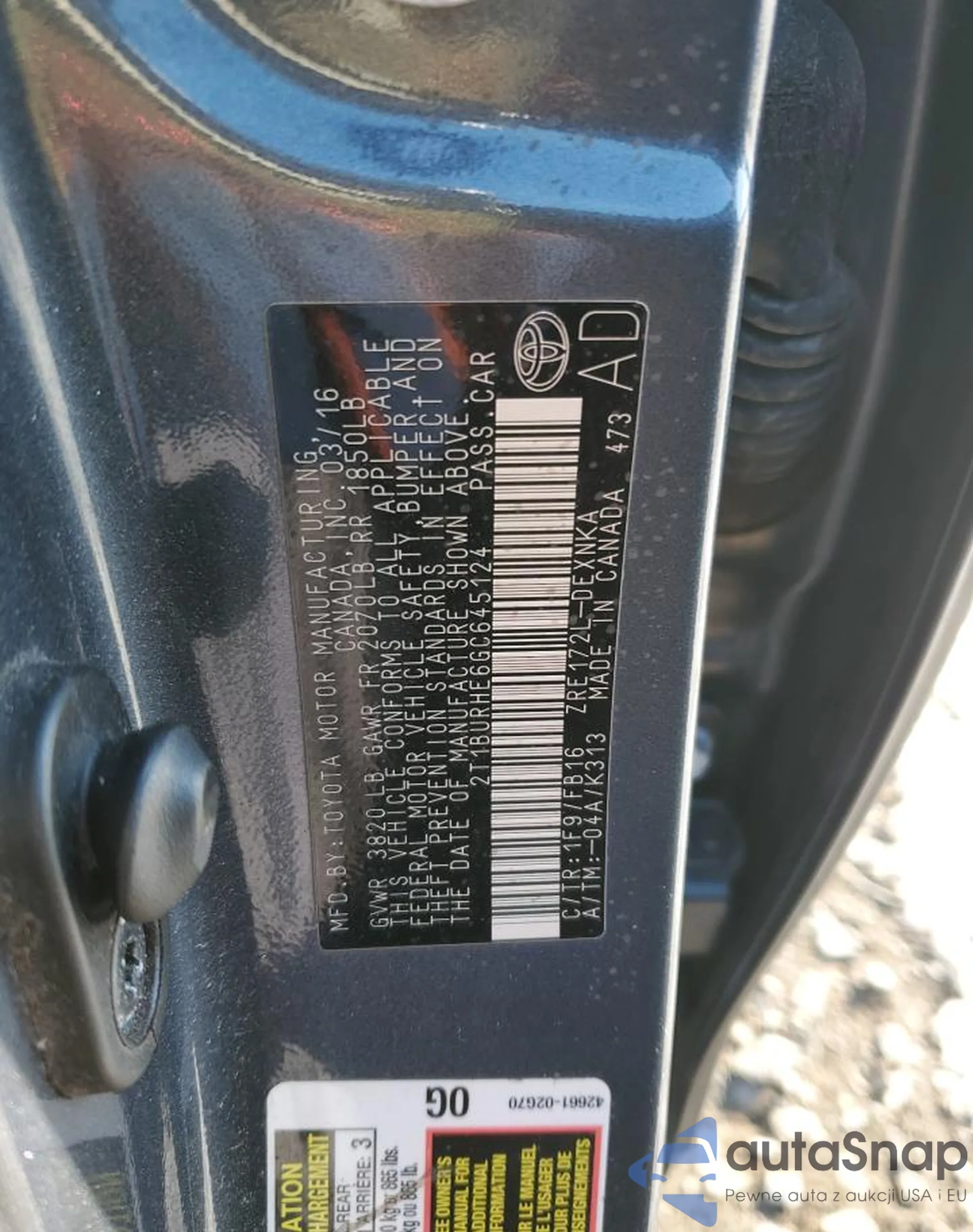 VIN: 2T1BURHE6GC645124