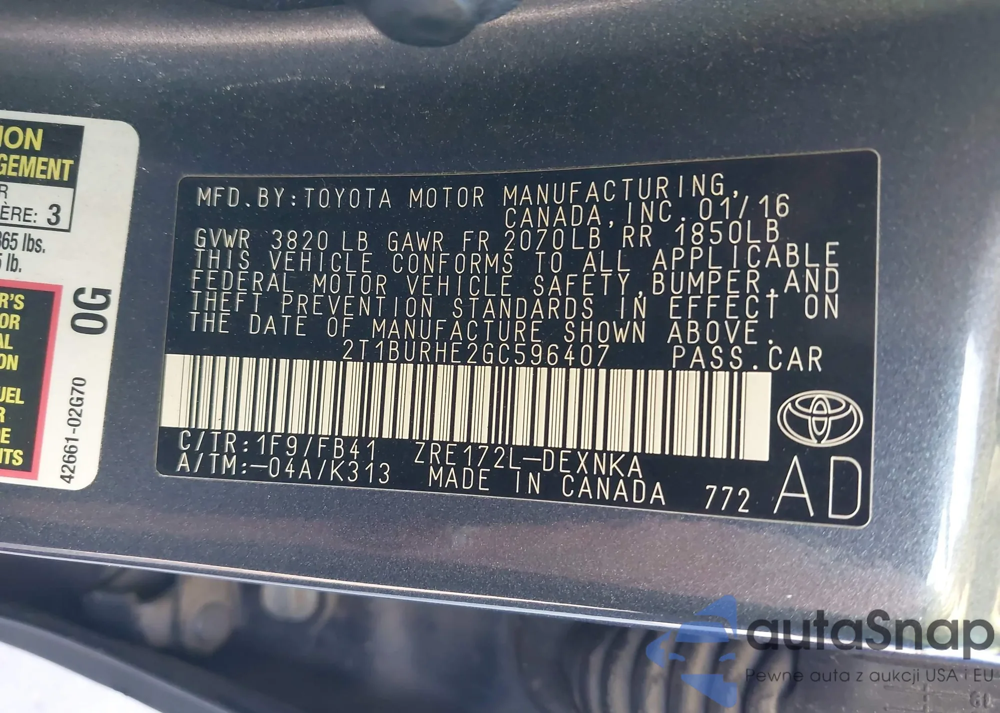 VIN: 2T1BURHE2GC596407