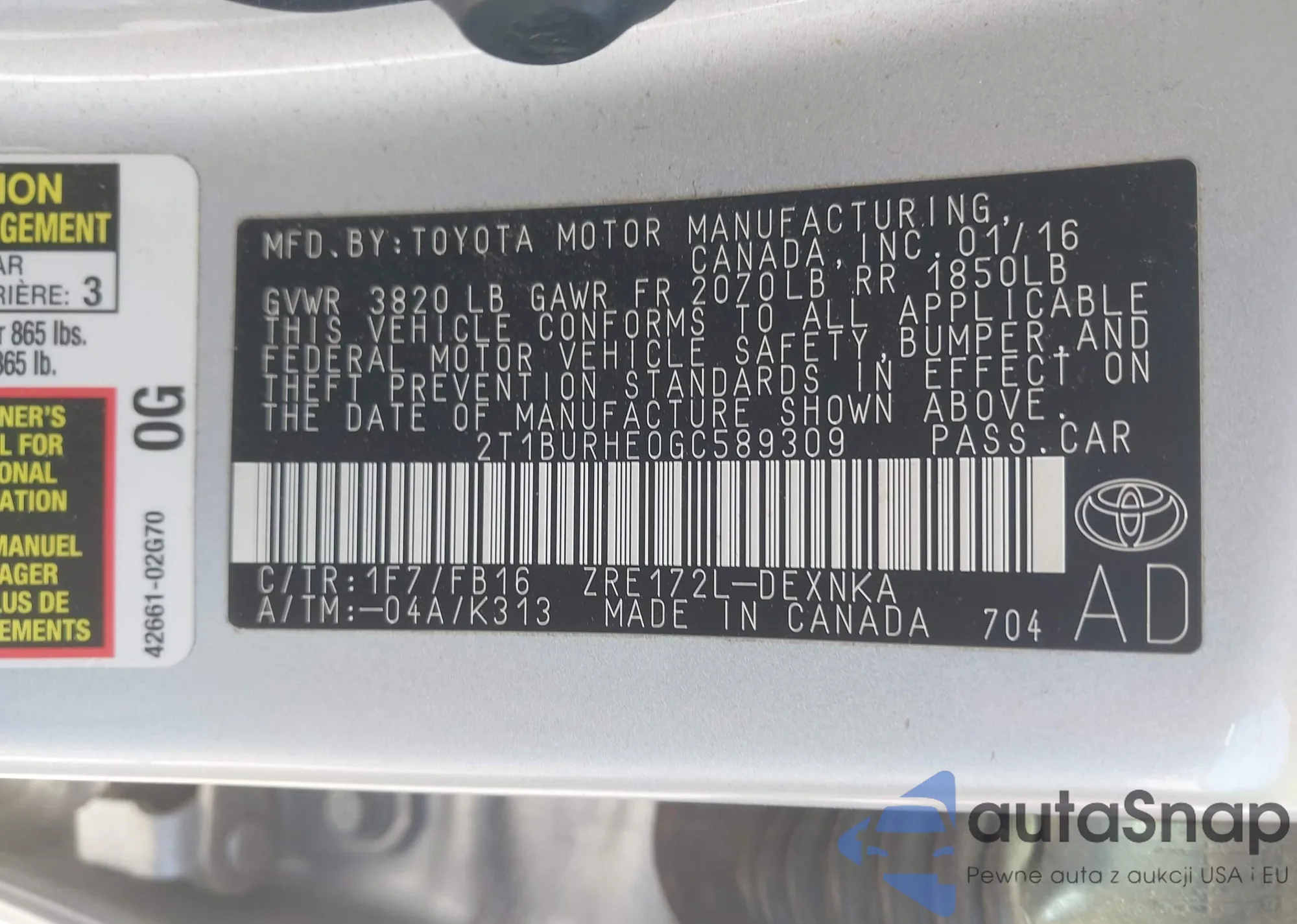 Marka: 2016 Toyota Corolla L...