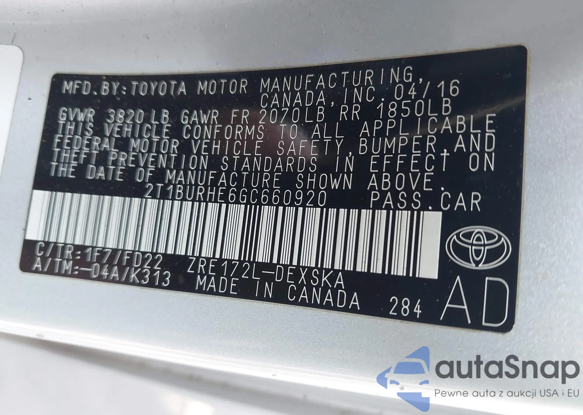 VIN: 2T1BURHE6GC660920