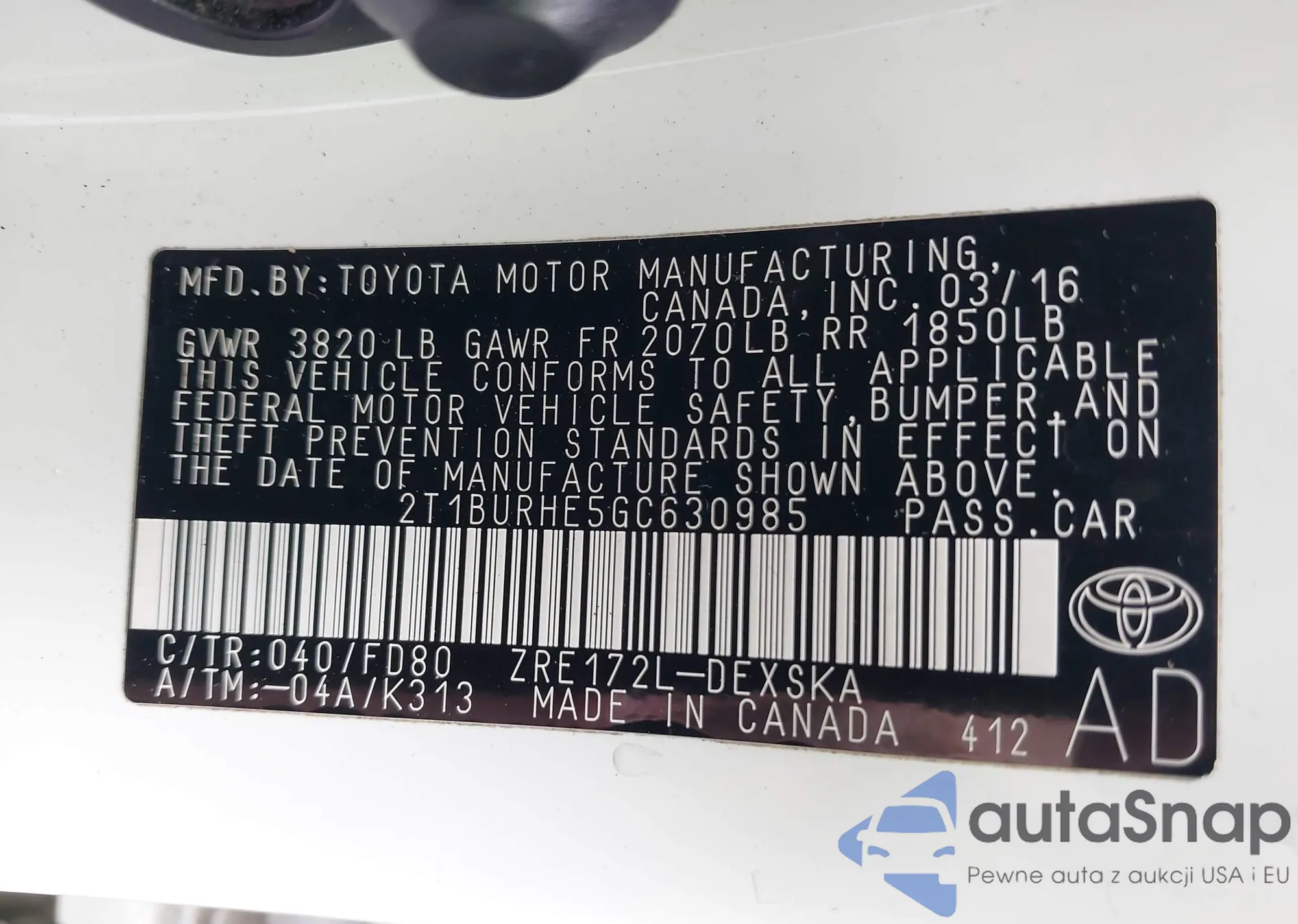 Toyota Corolla 2016 – Historia pojazdu (sprzedany na IAAI)