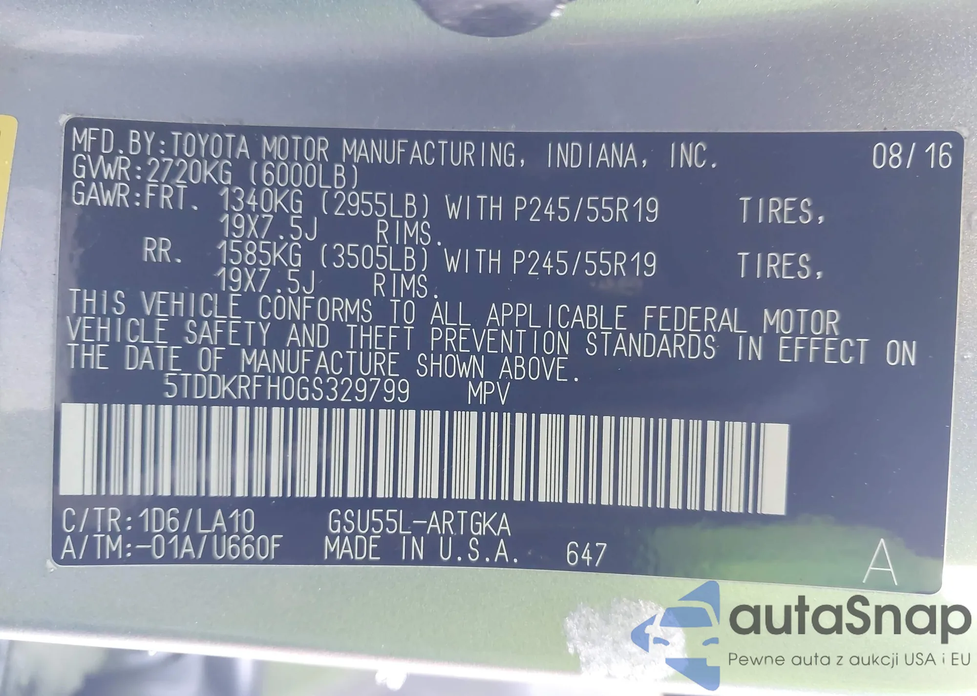 Samochód Toyota Highlander 2016 (VIN 5TDDKRFH0GS329799) nie był wcześniej licytowany. Dokumenty są czyste, przebieg odpowiada lub jest niższy niż średnia rynku. Sprzedaje go firma ubezpieczeniowa – polecamy zakup. Dostawa do portu zajmie ok. 6–8 tygodni.