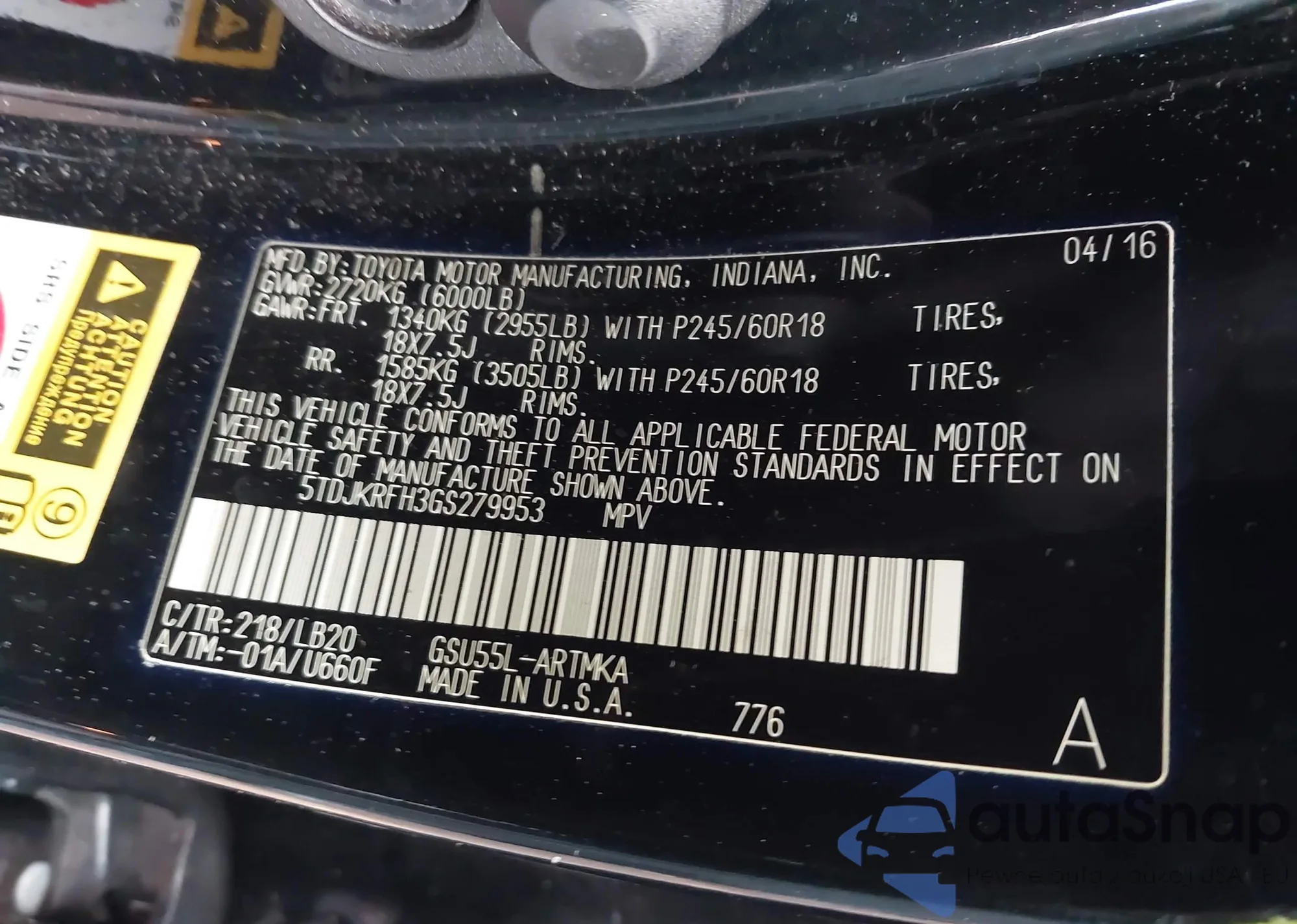 • VIN: 5TDJKRFH3GS279953