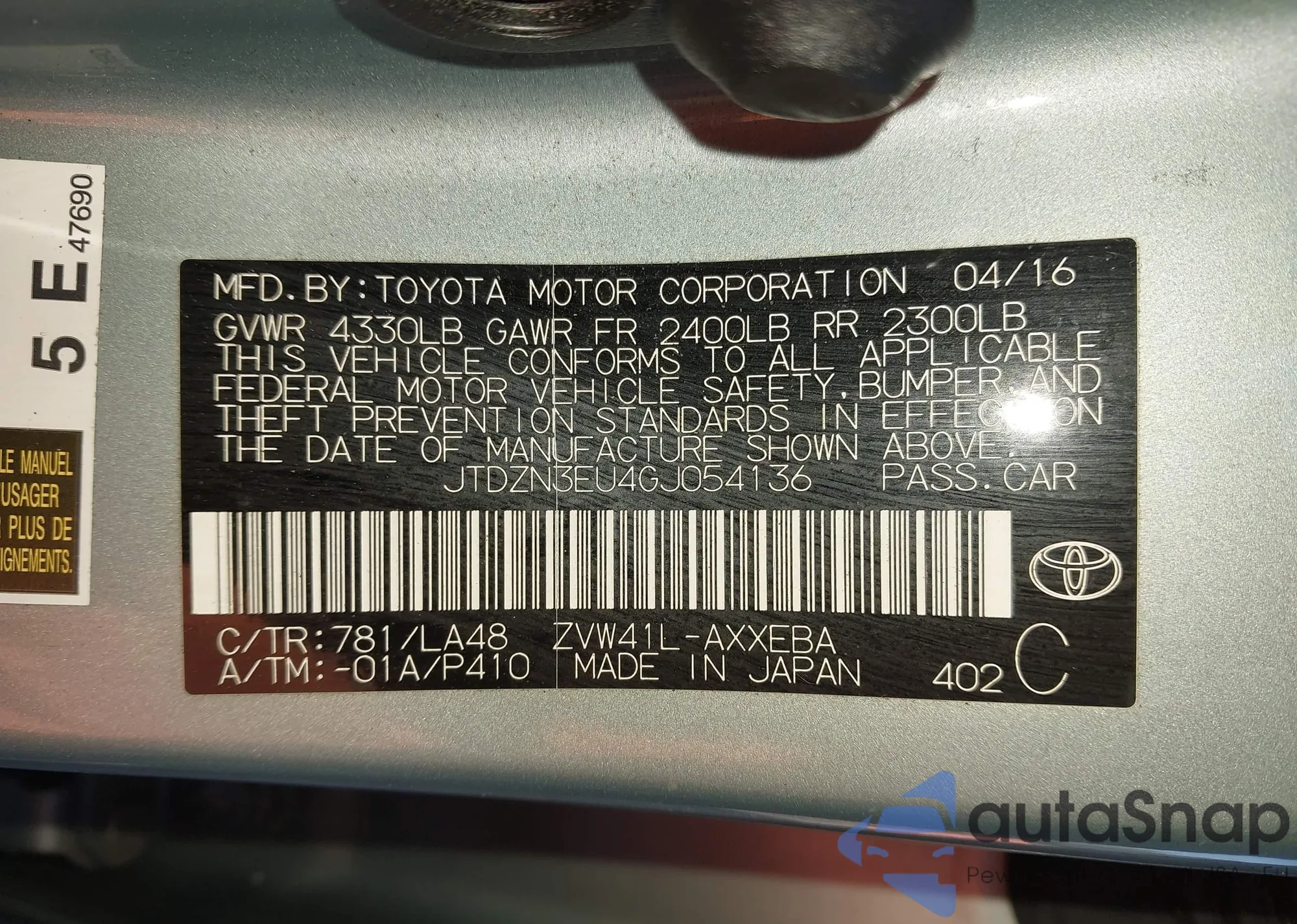 VIN: JTDZN3EU4GJ054136