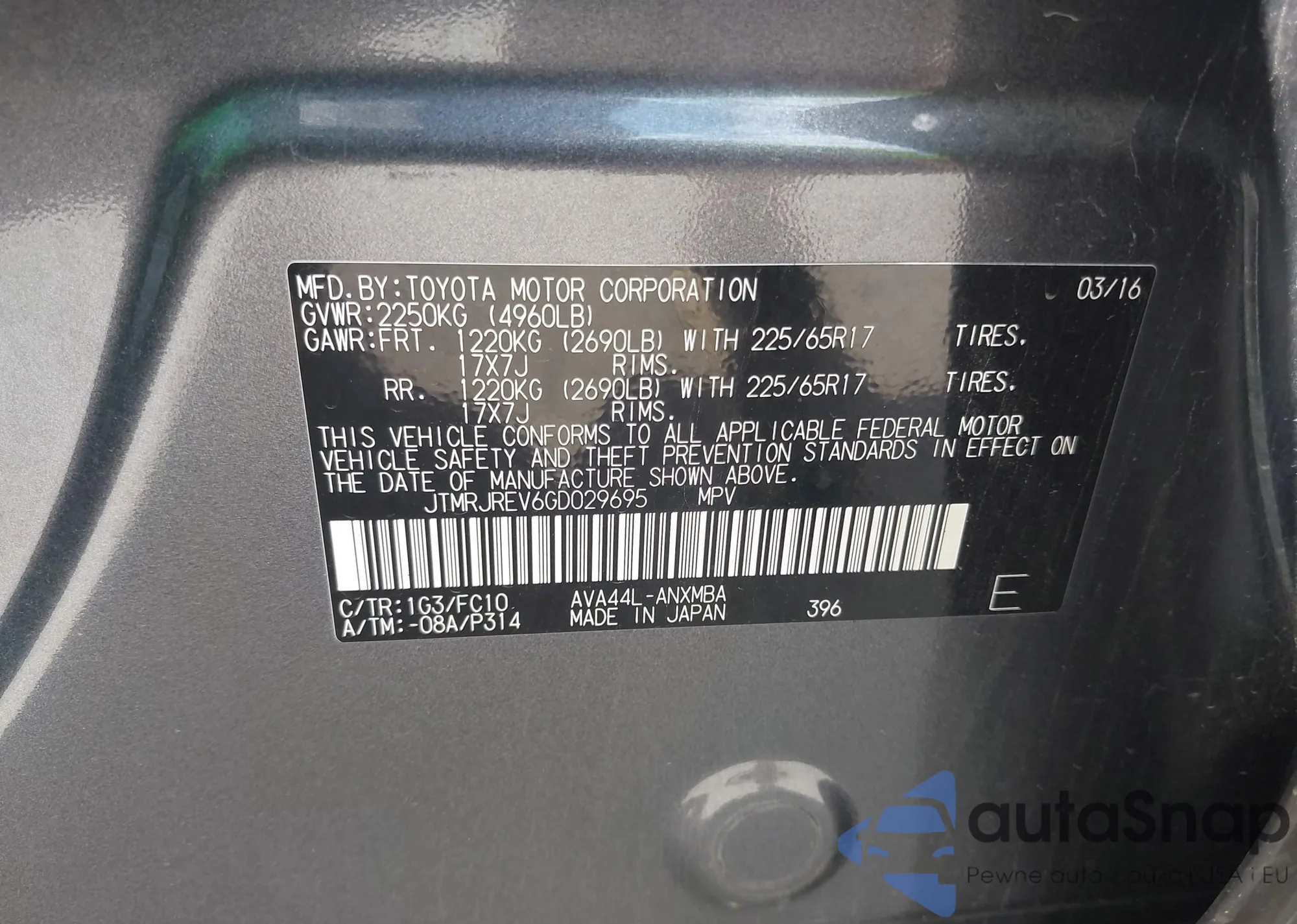 VIN: JTMRJREV6GD029695