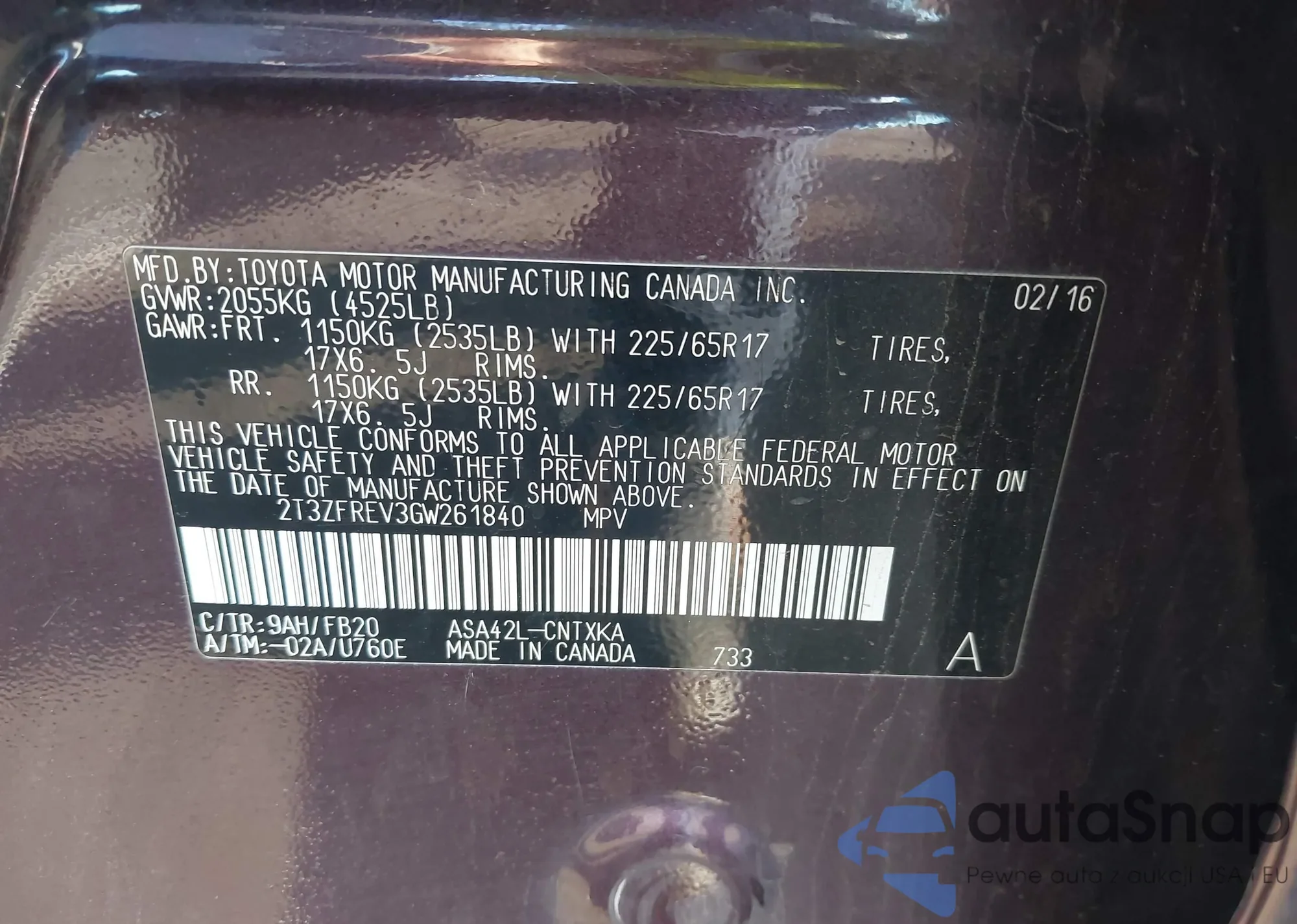 Toyota RAV 4 2016 – Historia pojazdu (sprzedany na IAAI)