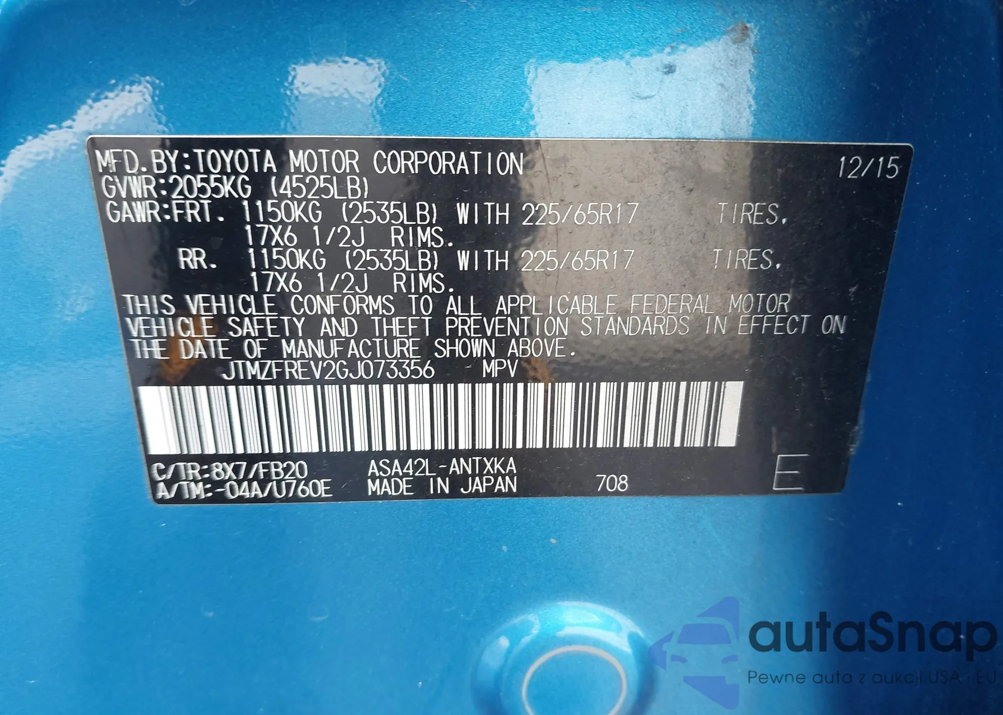 VIN: JTMZFREV2GJ073356