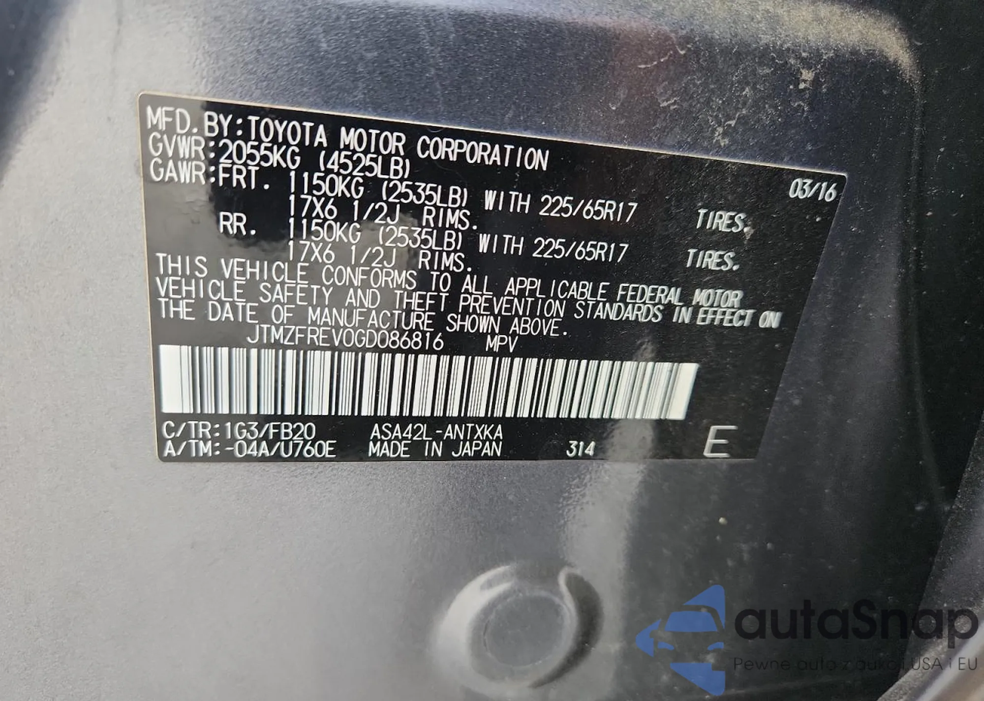 VIN: JTMZFREV0GD086816