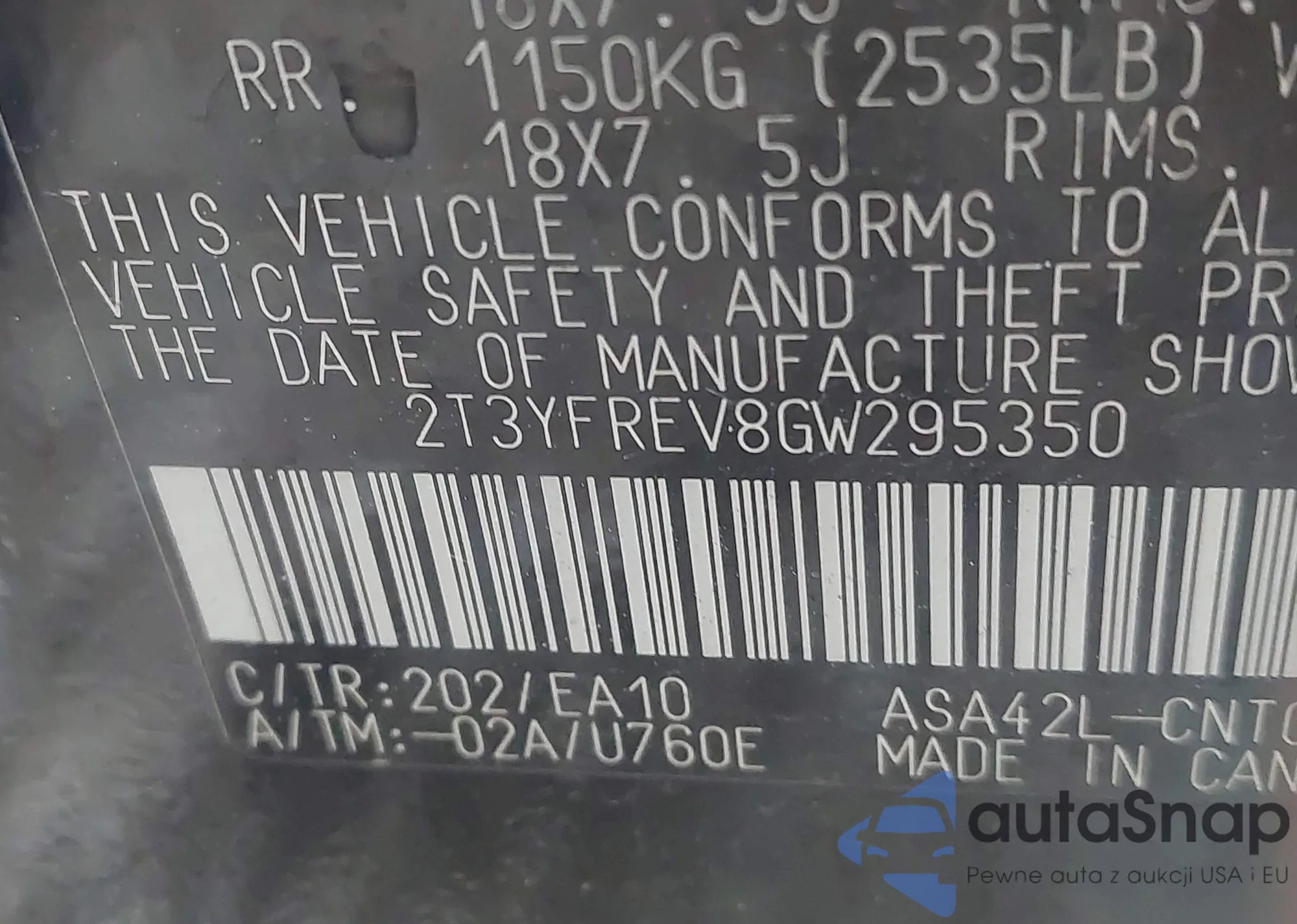 VIN: 2T3YFREV8GW295350