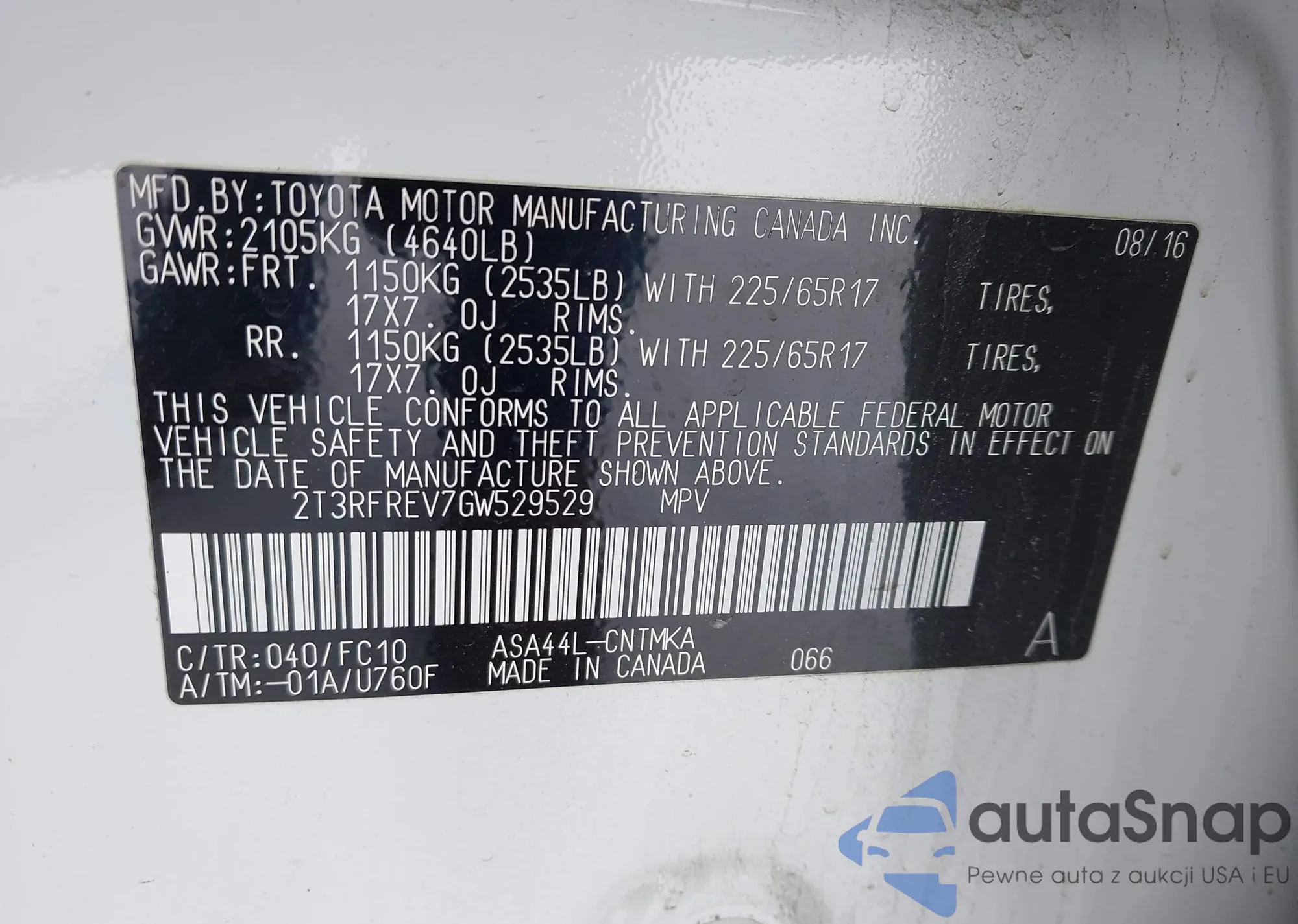 VIN: 2T3RFREV7GW529529