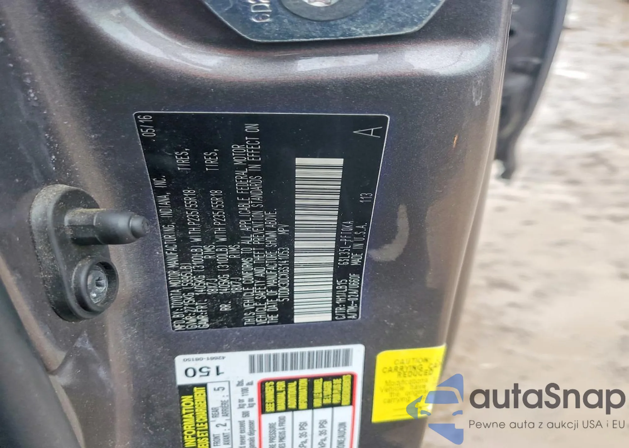 Toyota Sienna 2016 – Historia pojazdu (sprzedany na COPART)