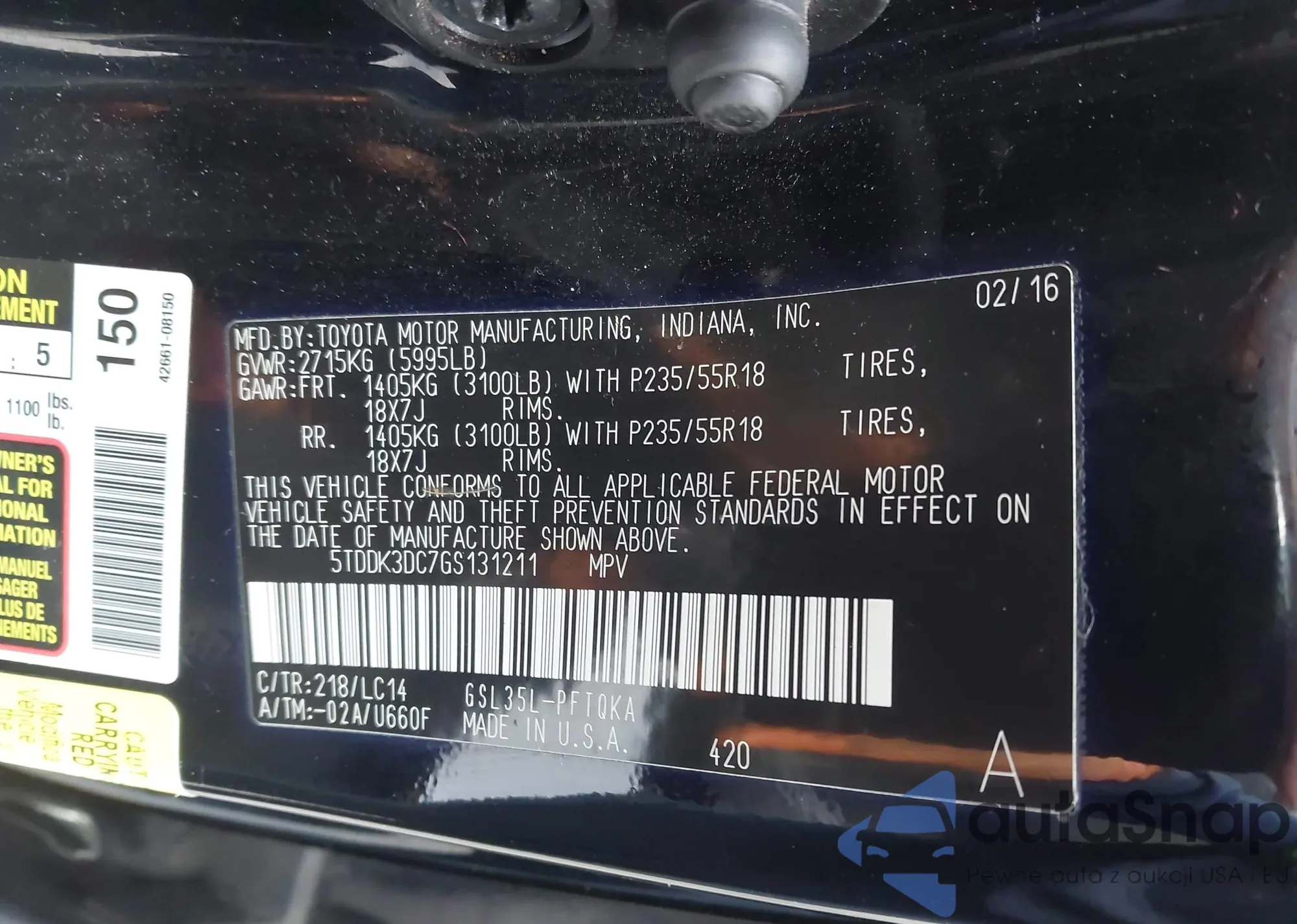 Samochód Toyota Sienna 2016 (VIN 5TDDK3DC7GS131211) nie był wcześniej licytowany. Dokumenty są czyste, przebieg odpowiada lub jest niższy niż średnia rynku. Sprzedaje go firma ubezpieczeniowa – polecamy zakup. Dostawa do portu zajmie ok. 6–8 tygodni.