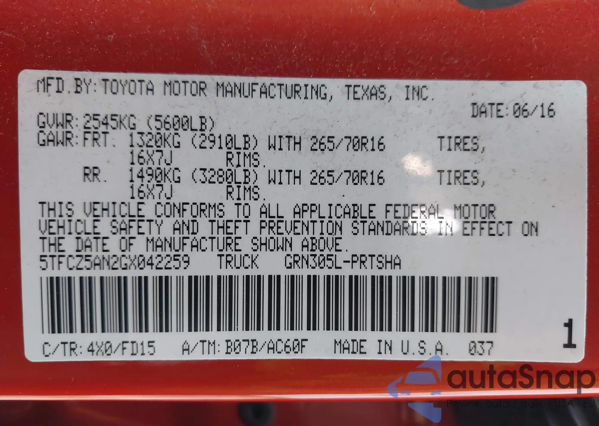 • VIN: 5TFCZ5AN2GX042259
