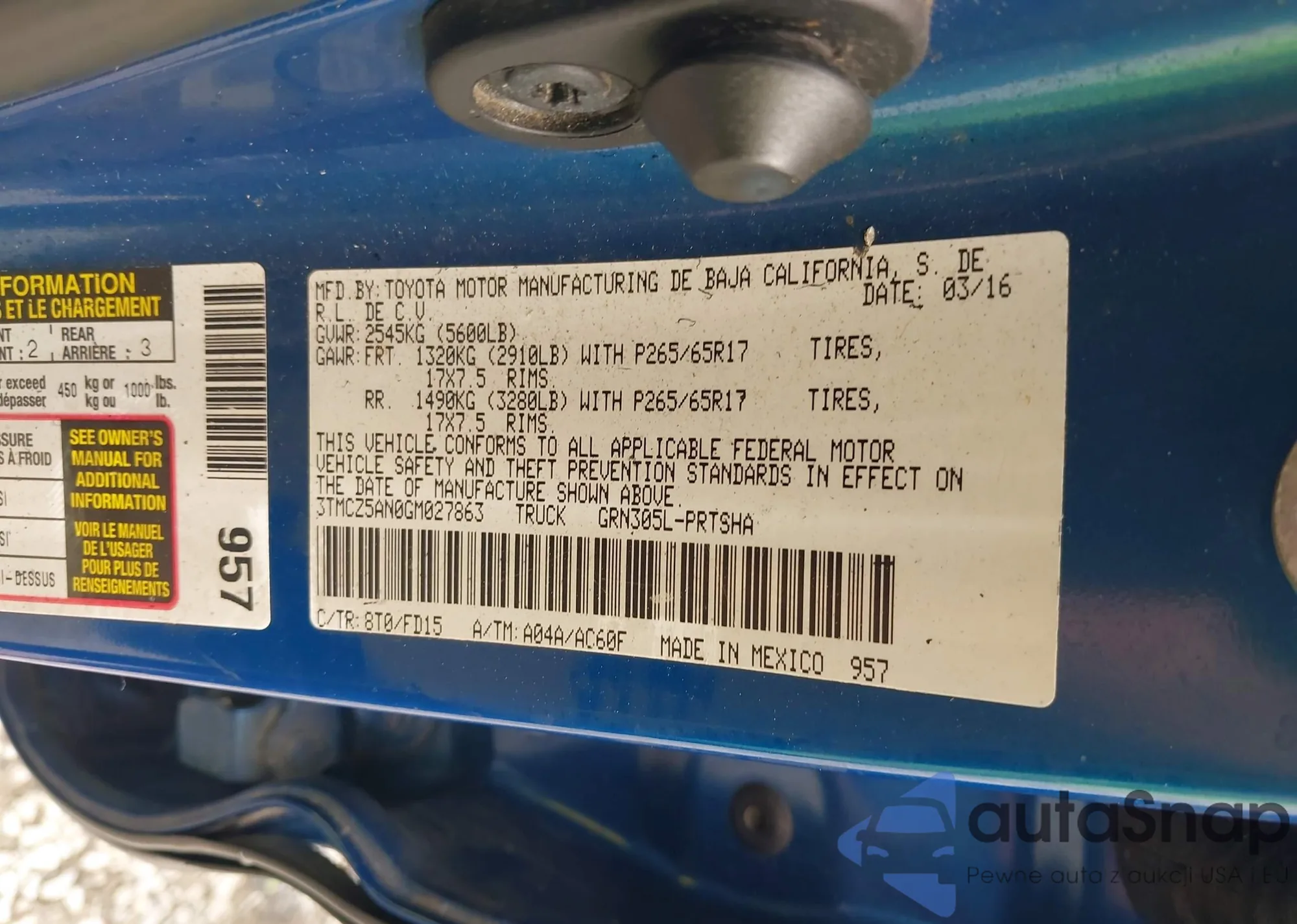 Toyota Tacoma 2016 – Historia pojazdu (sprzedany na IAAI)