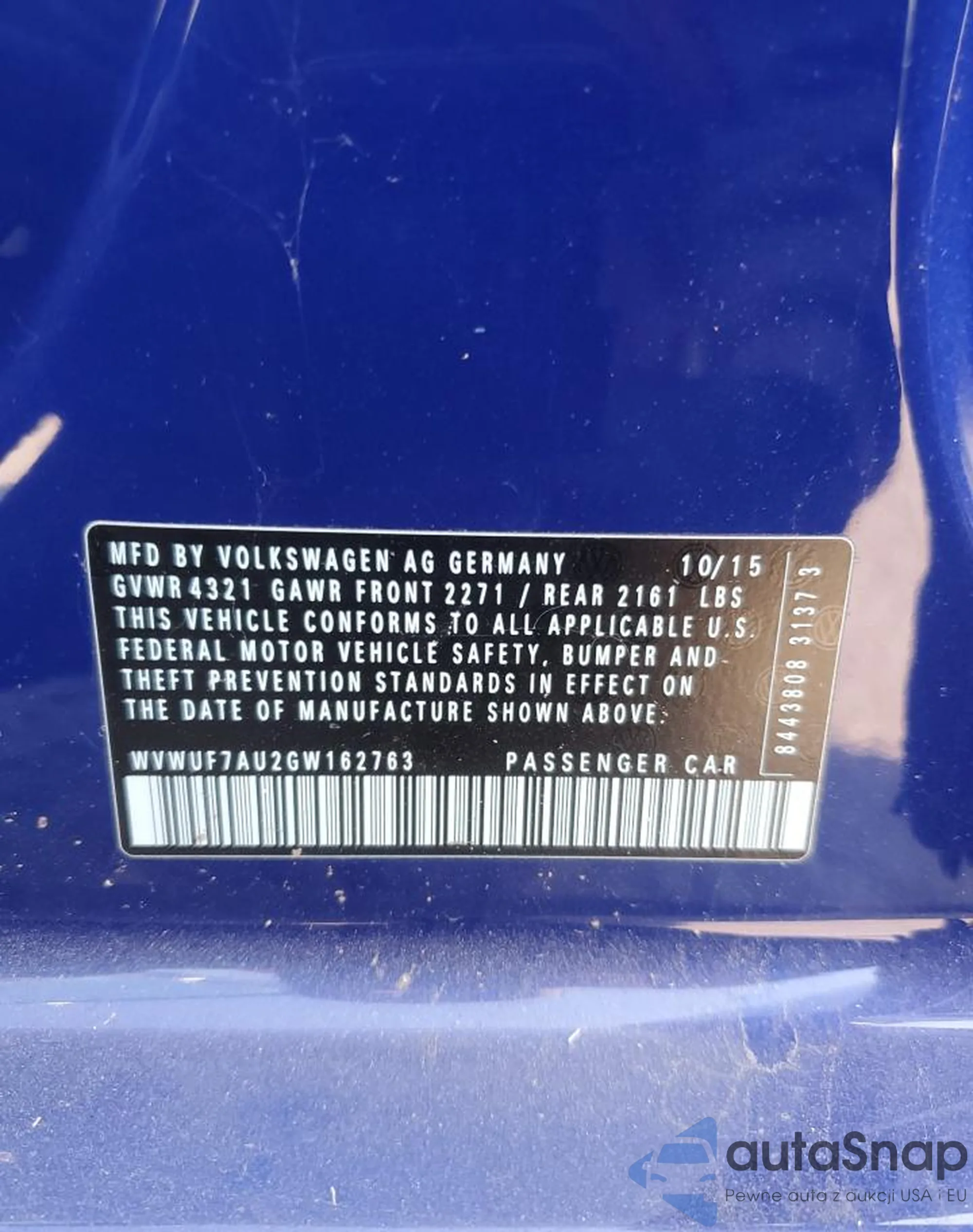 VIN: WVWUF7AU2GW162763