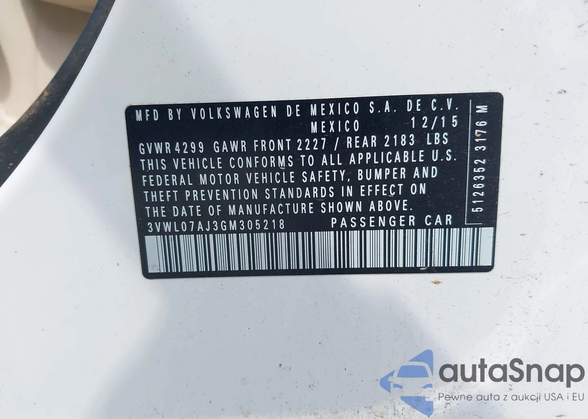 VIN: 3VWL07AJ3GM305218