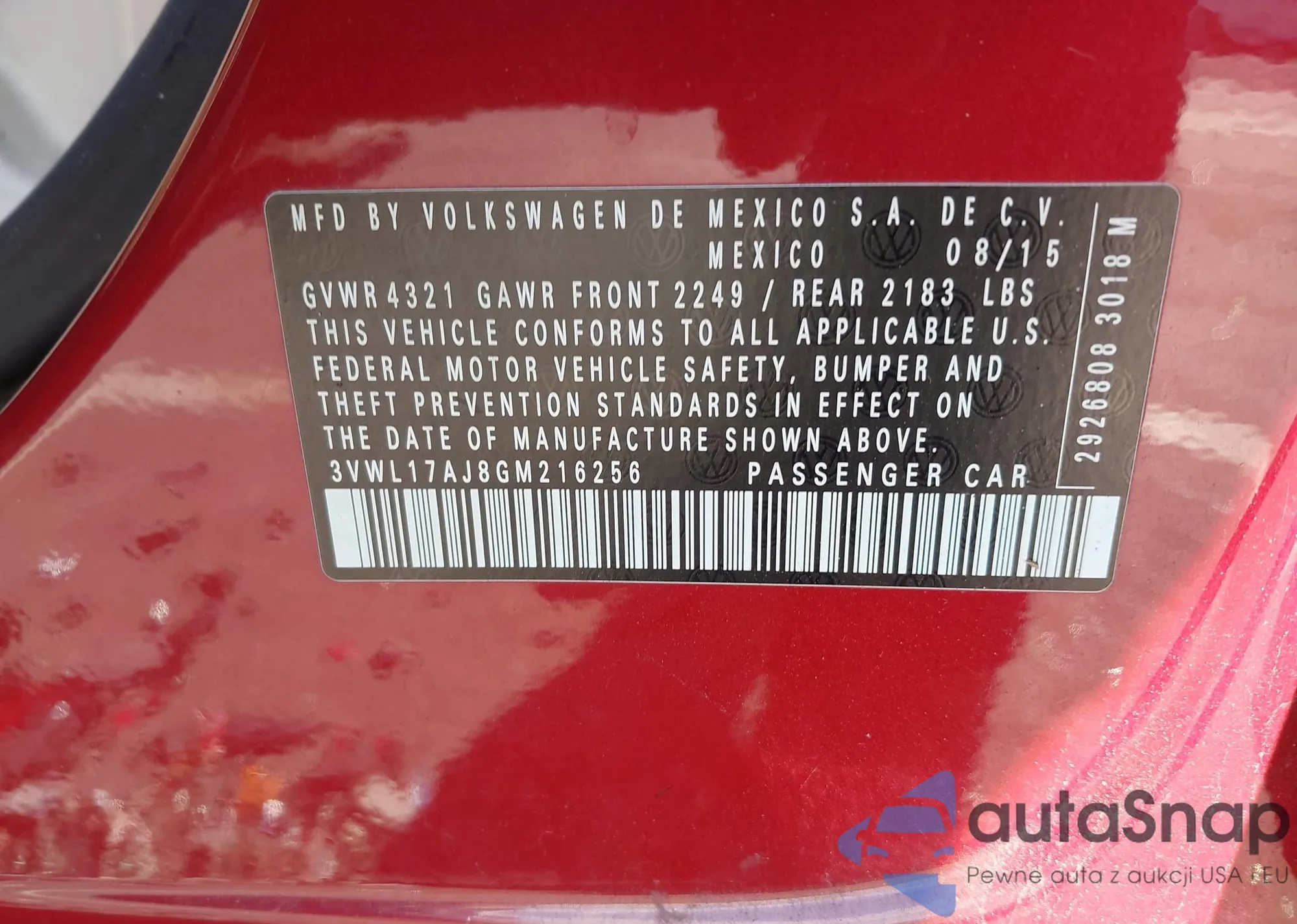 Samochód Volkswagen Jetta 2016 (VIN 3VWL17AJ8GM216256) nie był wcześniej licytowany. Dokumenty są czyste, przebieg odpowiada lub jest niższy niż średnia rynku. Sprzedaje go firma ubezpieczeniowa – polecamy zakup. Dostawa do portu zajmie ok. 6–8 tygodni.