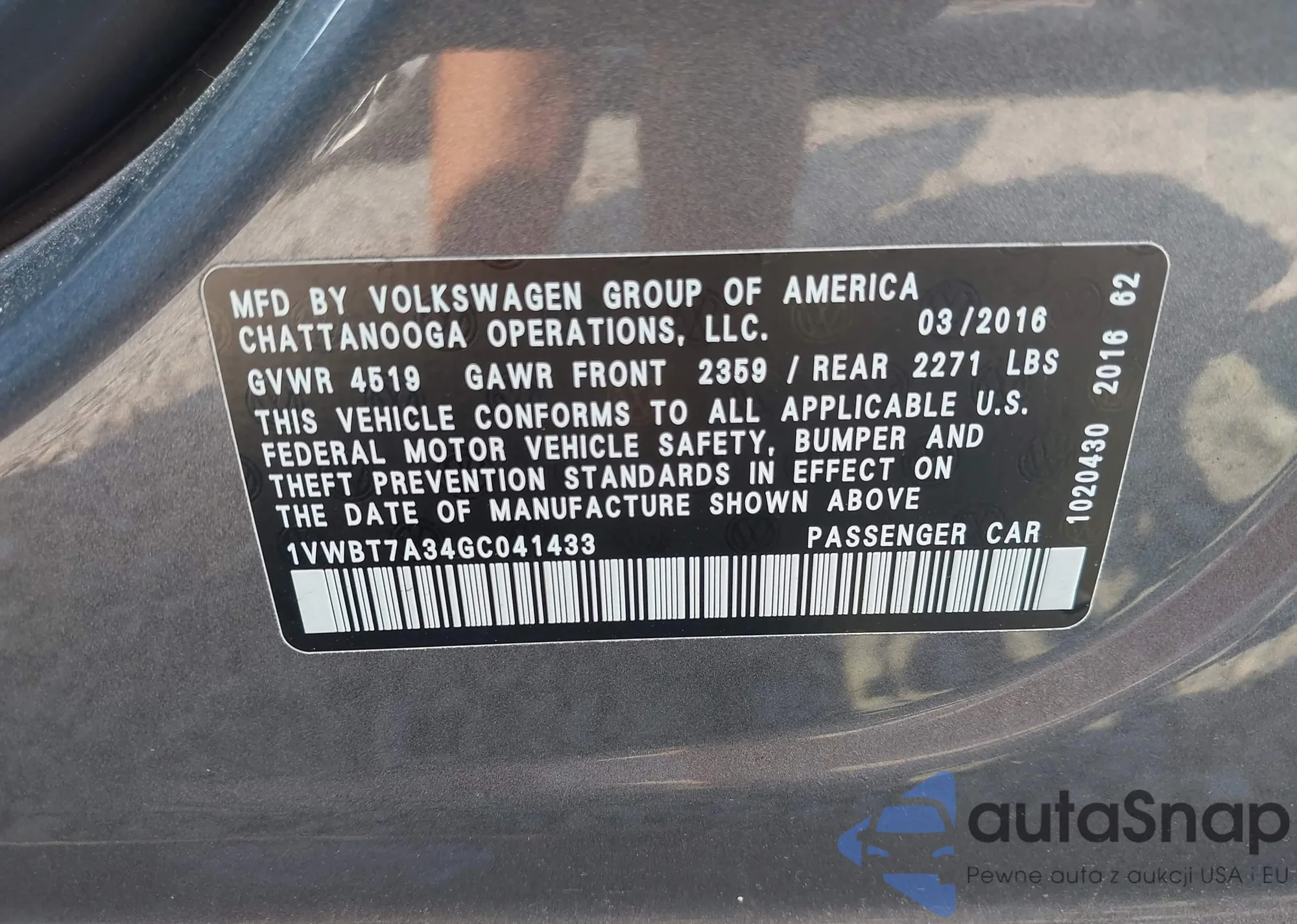 VIN: 1VWBT7A34GC041433