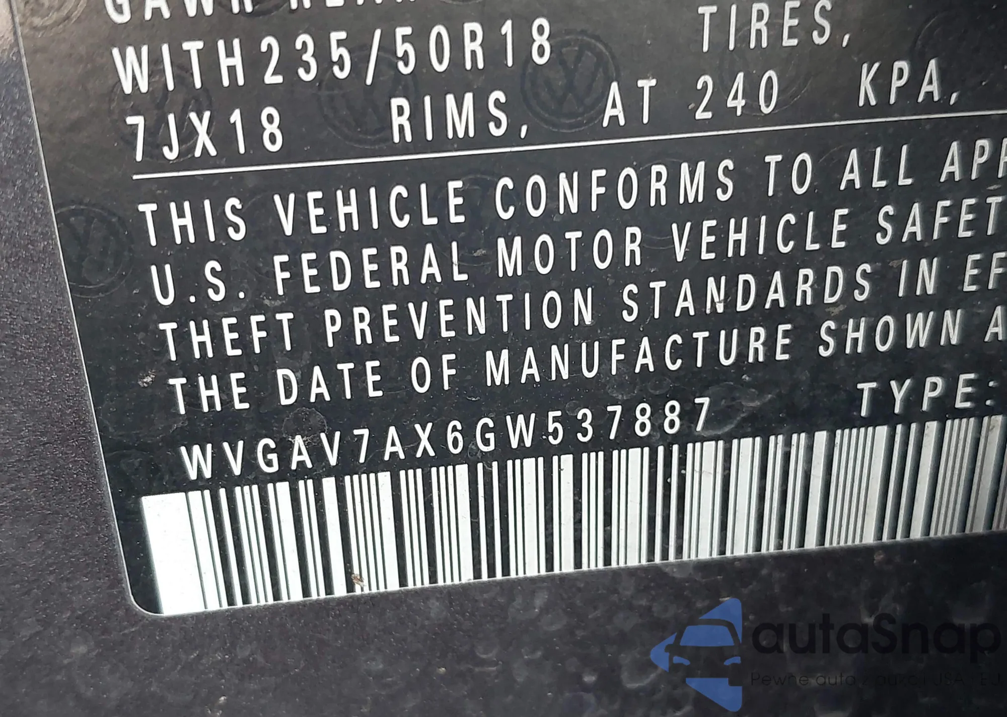 VIN: WVGAV7AX6GW537887