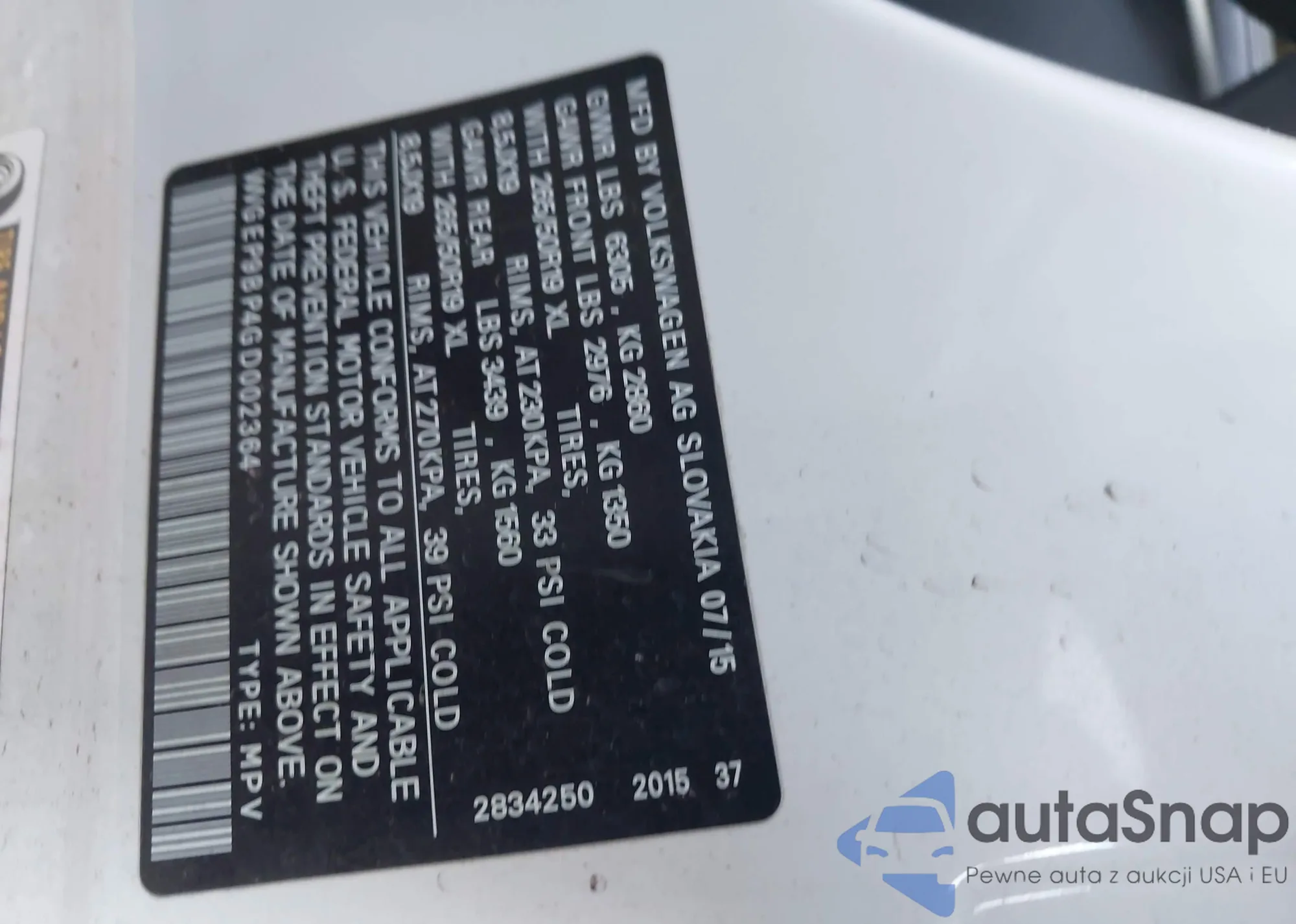 VIN: WVGEP9BP4GD002364