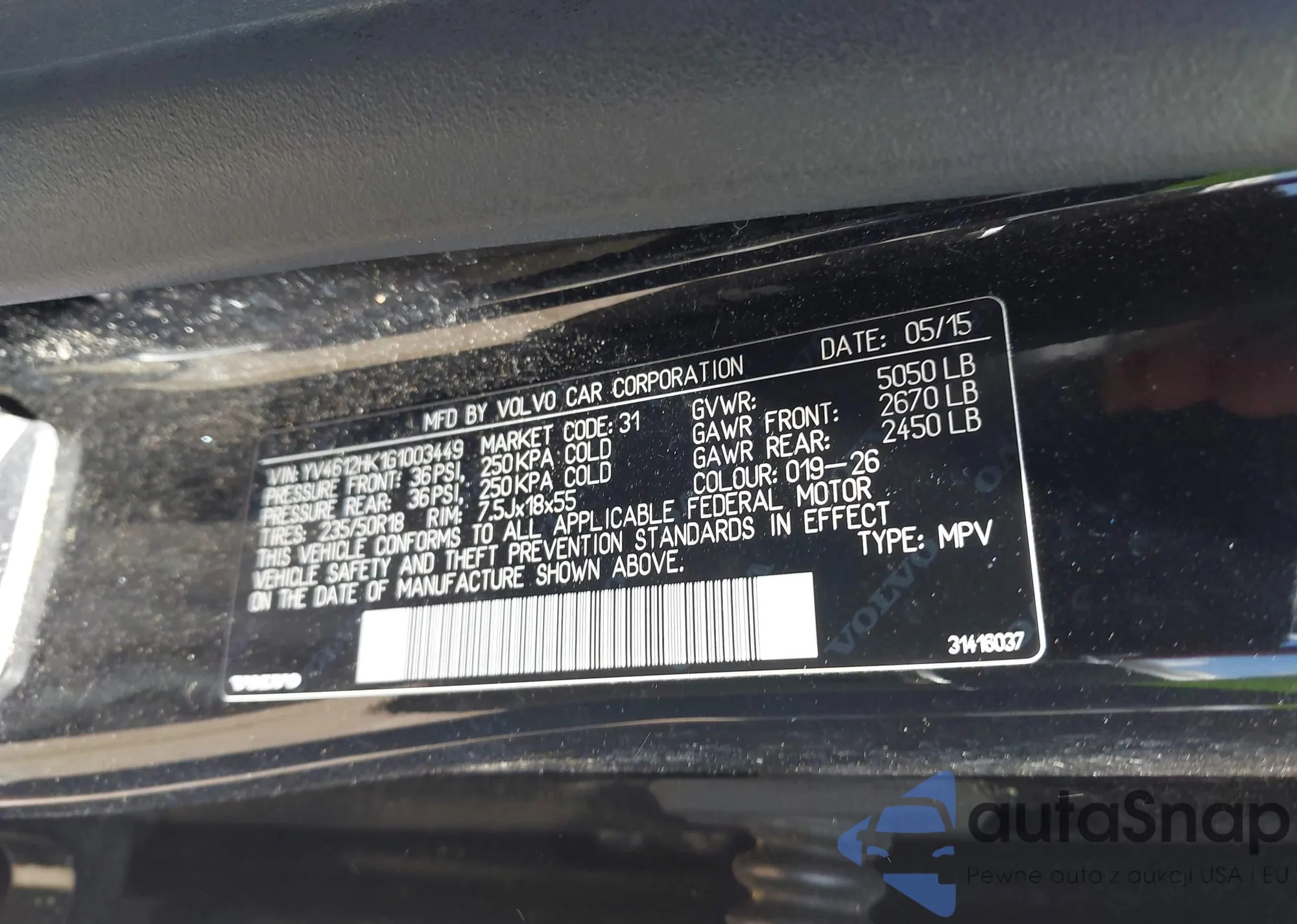 VIN: YV4612HK1G1003449