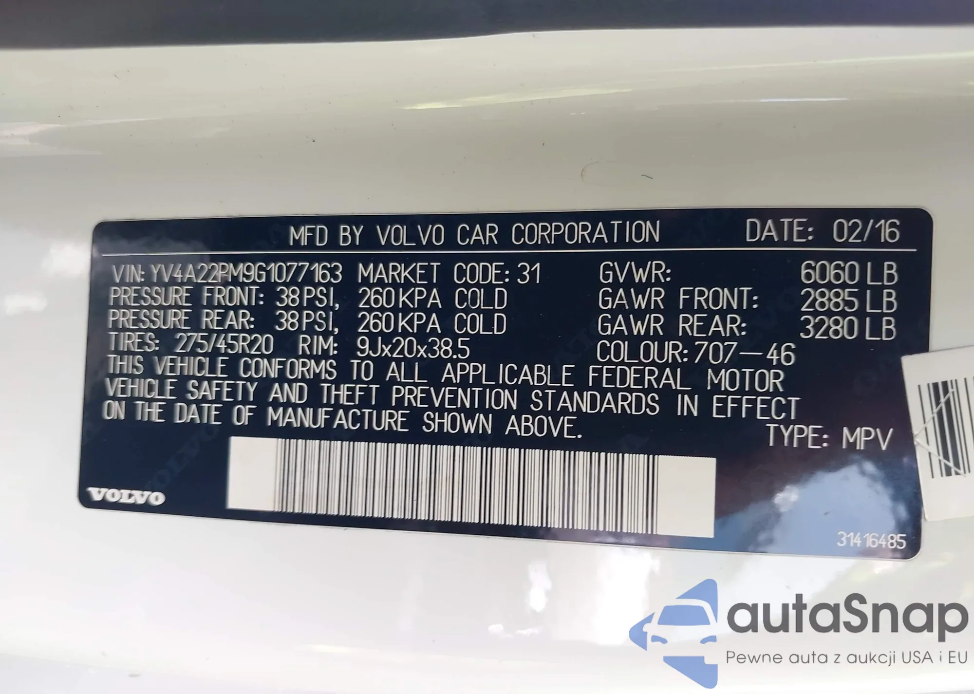 Volvo XC90 2016 – Historia pojazdu (sprzedany na IAAI)