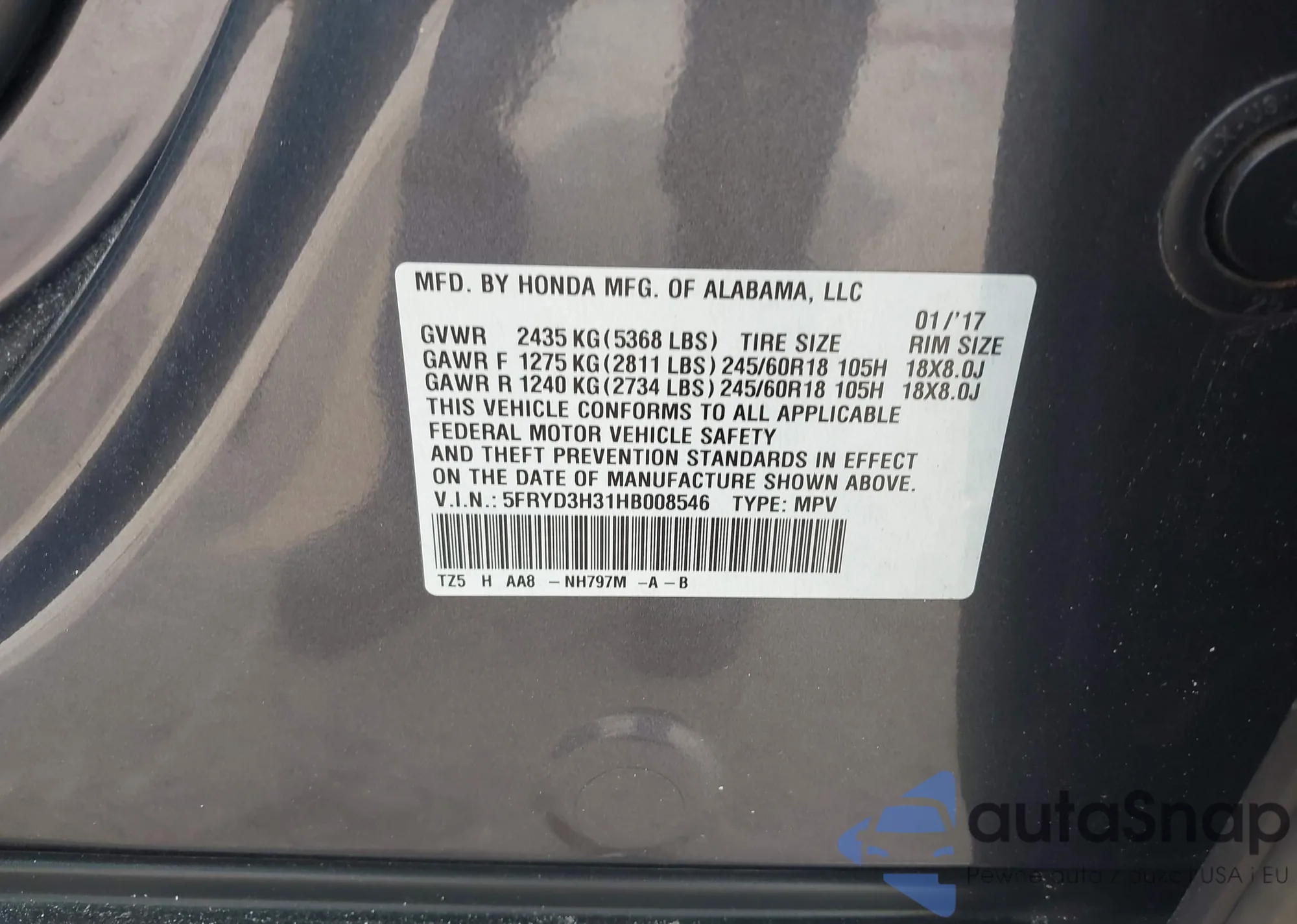 VIN: 5FRYD3H31HB008546