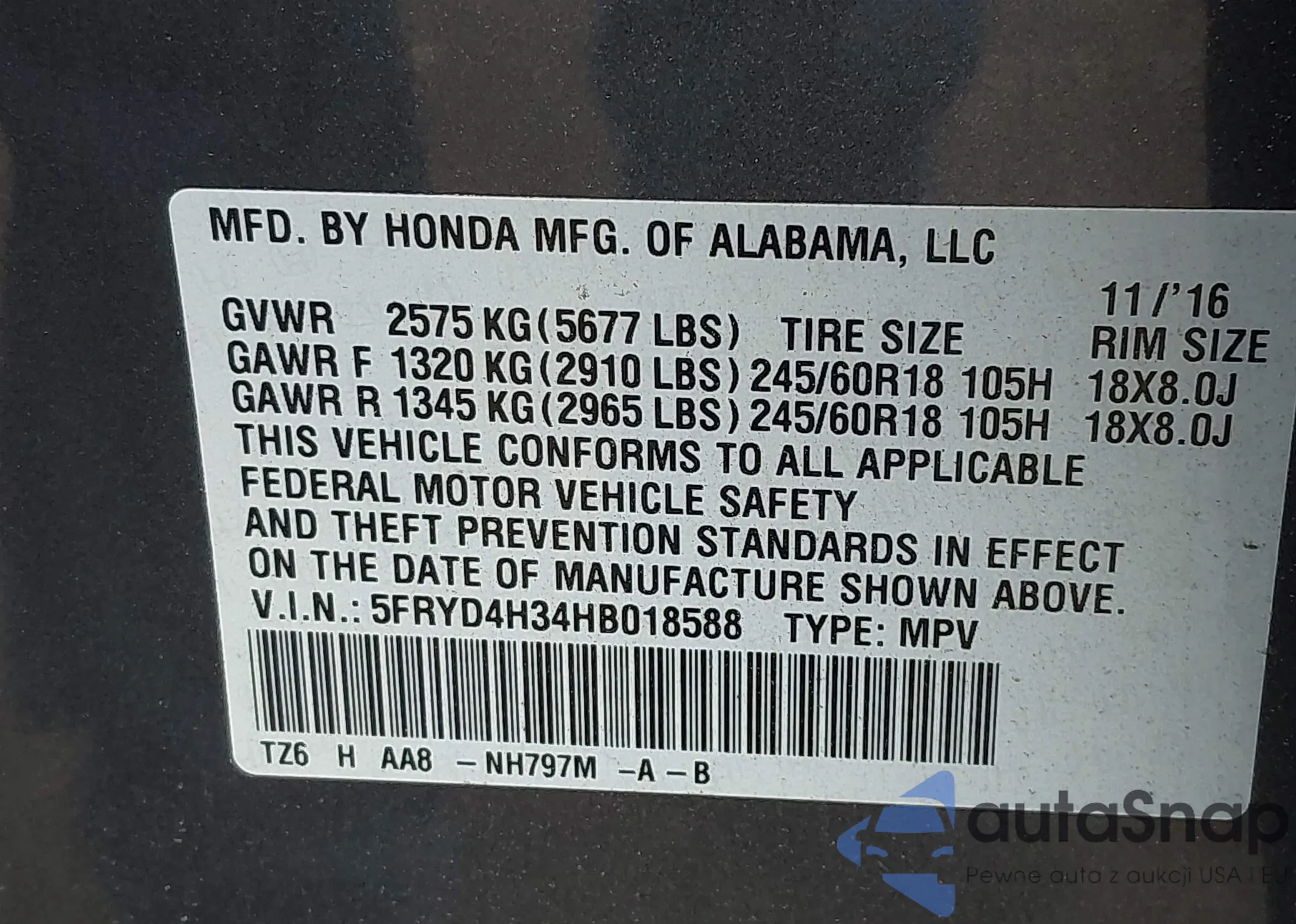 VIN: 5FRYD4H34HB018588
