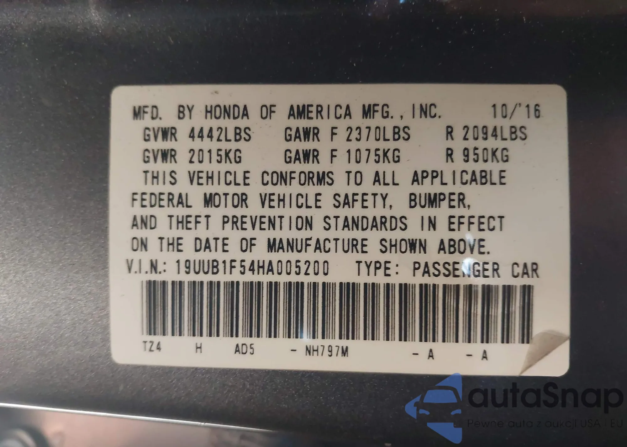 VIN: 19UUB1F54HA005200